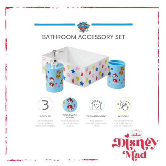 PAW Patrol 3-Piece Bathroom Accessory Set, Toothbrush Holder, Soap Pump, Storage Bin