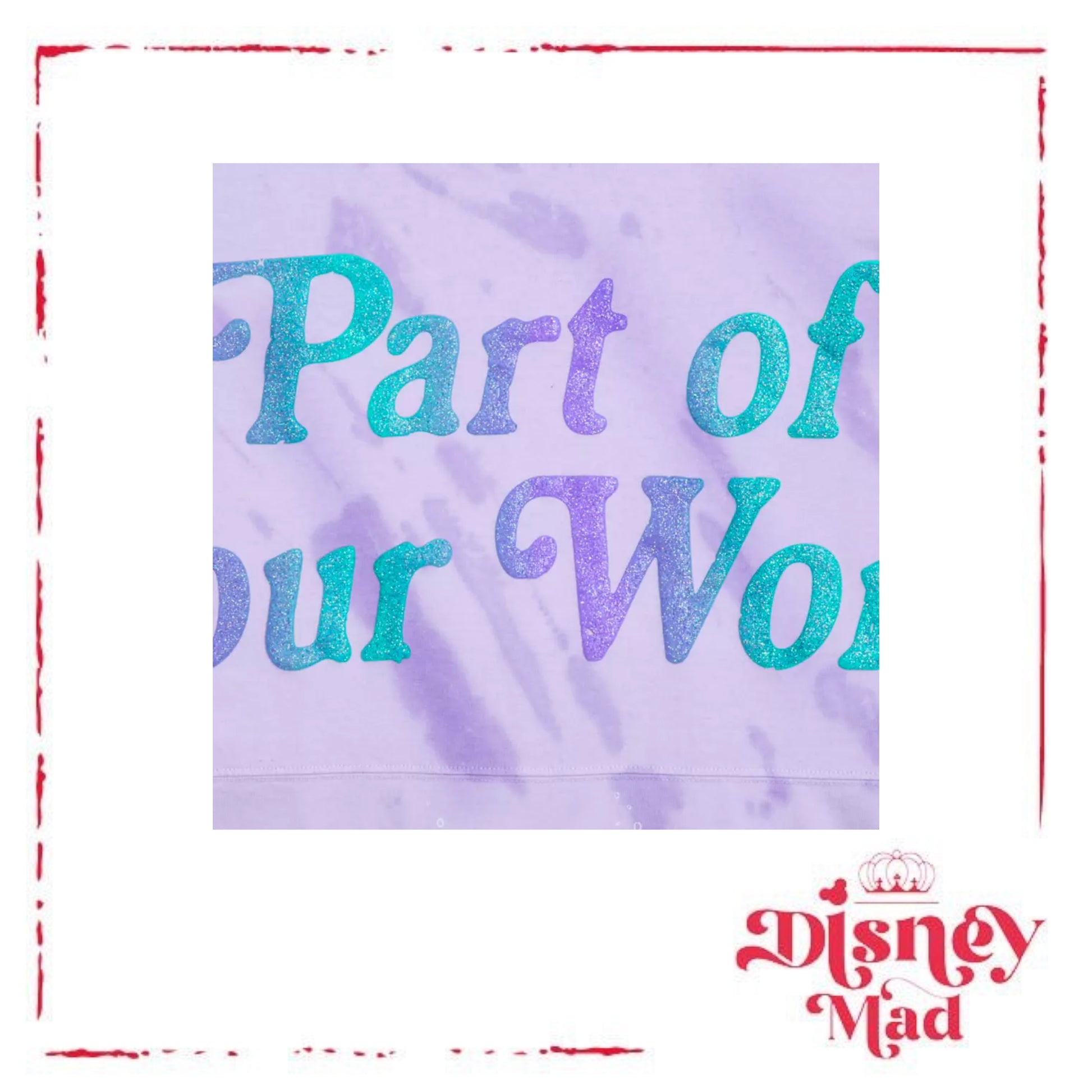 Rise from the sea to greet your destiny in this dreamy pullover Spirit Jersey with allover ''undersea'' dye effect, Ariel art and glittering ''Part of Your World'' text inspired by Disney's live action film, The Little Mermaid.