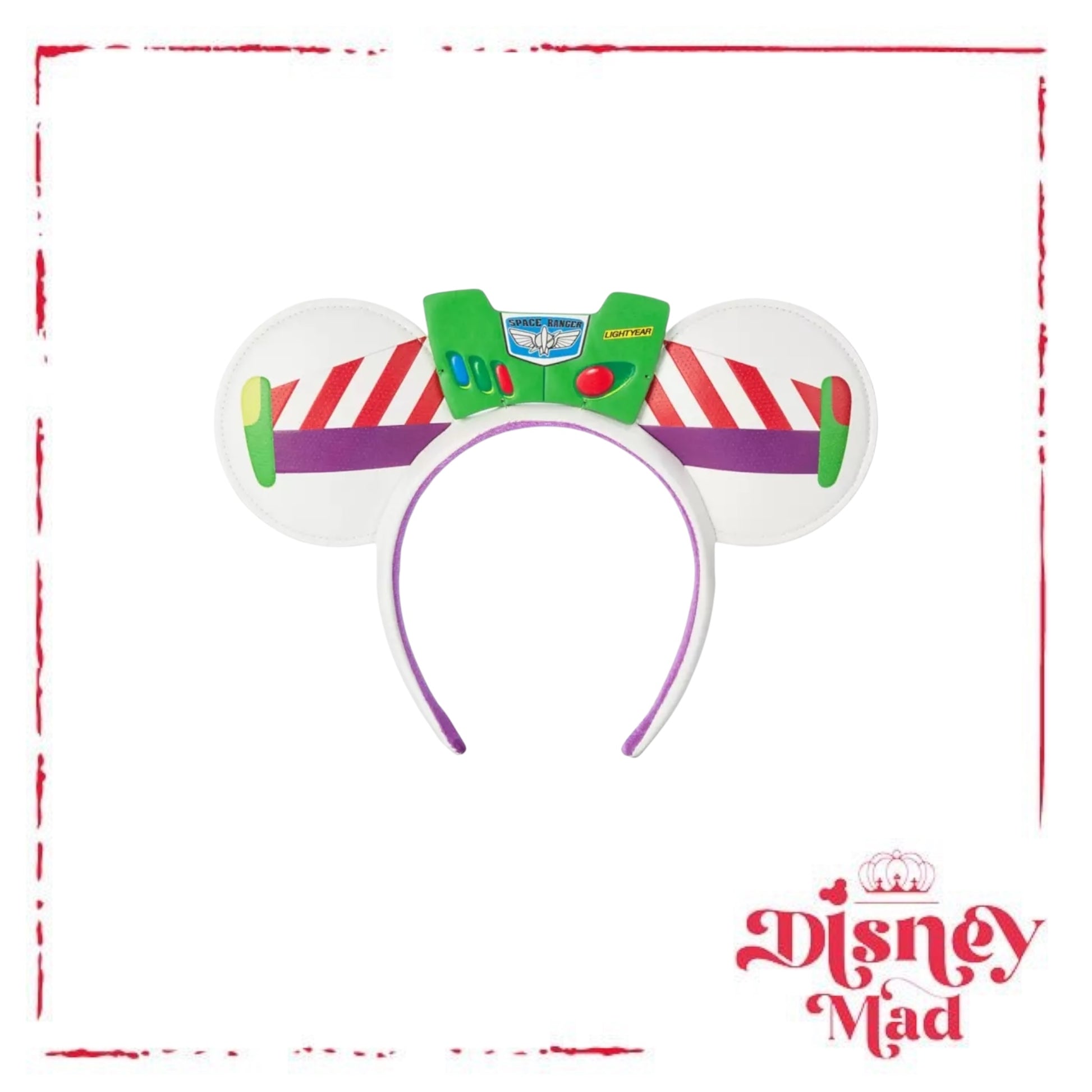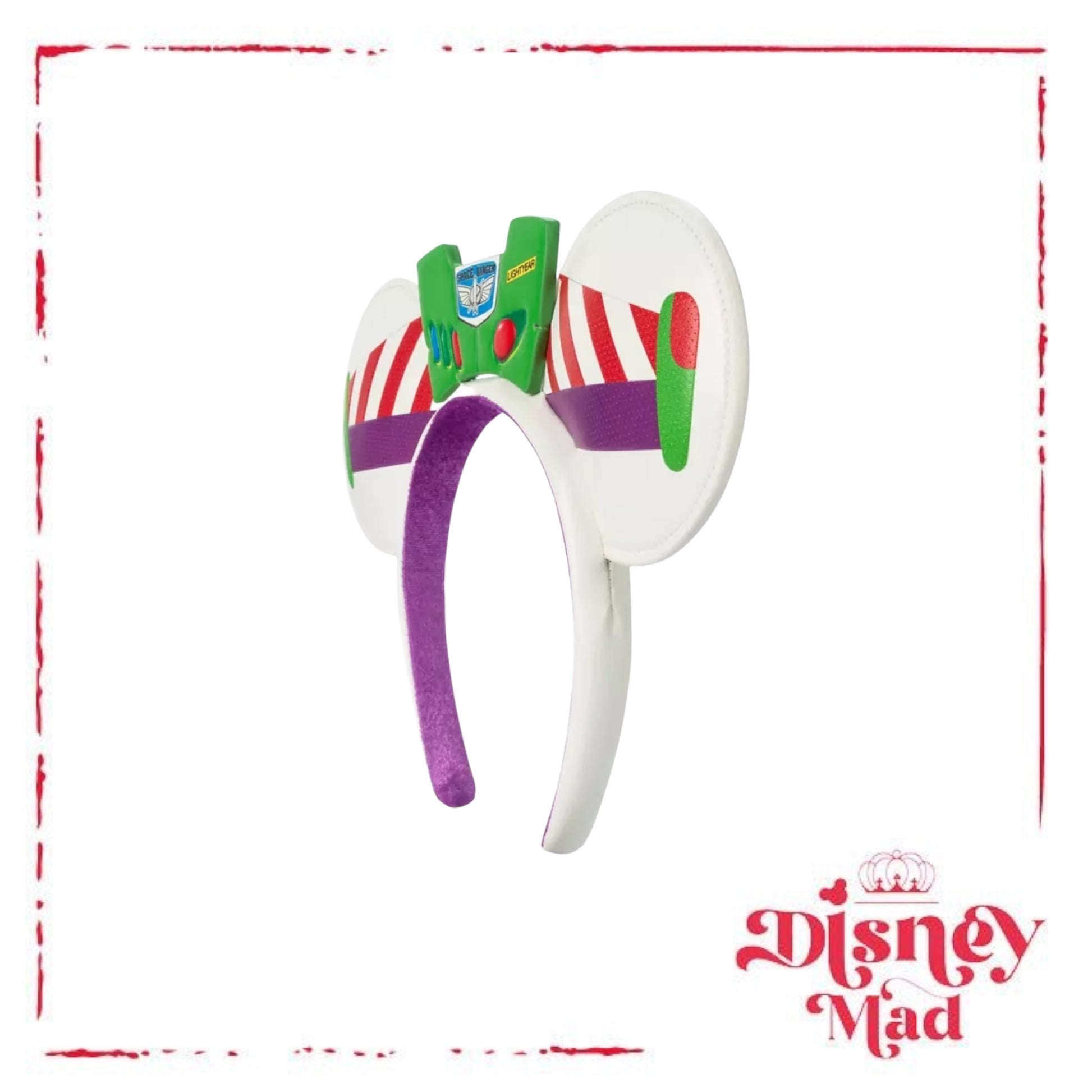 Top off your attire in Space Ranger style with this Buzz Lightyear ear headband. Featuring mouse ears inspired by Buzz's space suit, complete with his signature wings and chest plate, this jet-age accessory takes your look to infinity and beyond!