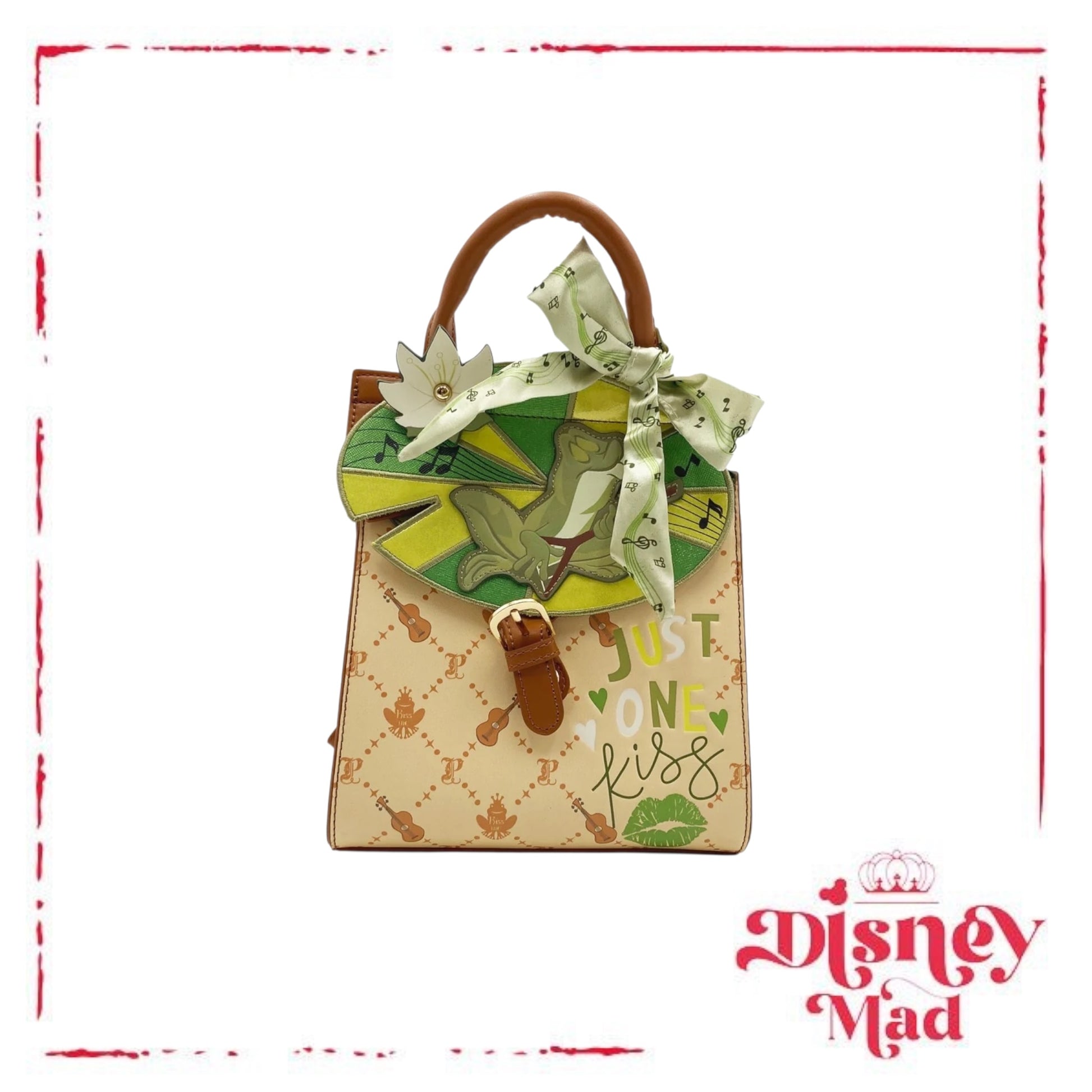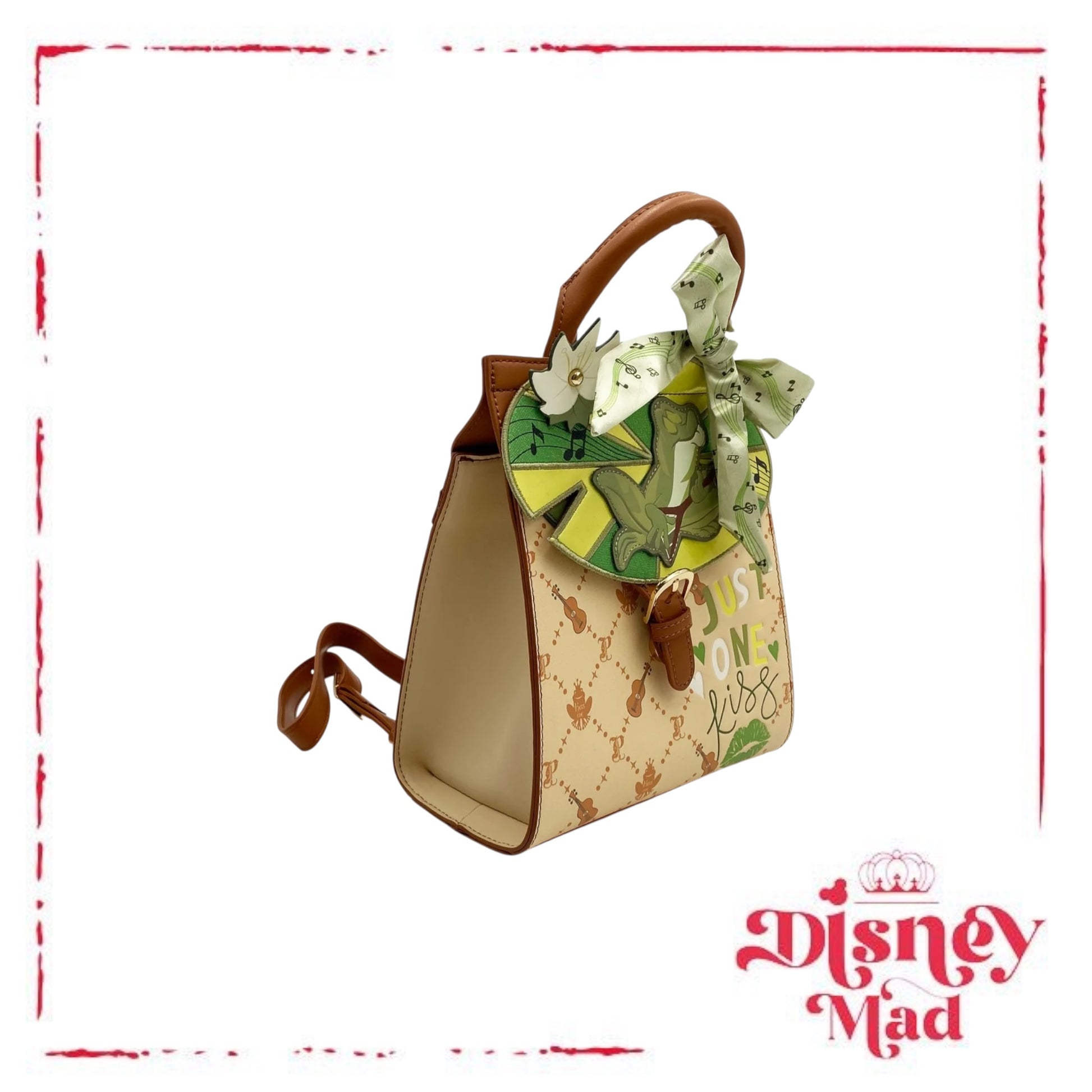 This sweet mini backpack, inspired by Prince Naveen in The Princess and the Frog, has such sweet details all over it. Musical notes on a lovely ribbon and the words "Just One Kiss" on the front of the backpack along with a big smooch from the one and only Tiana!