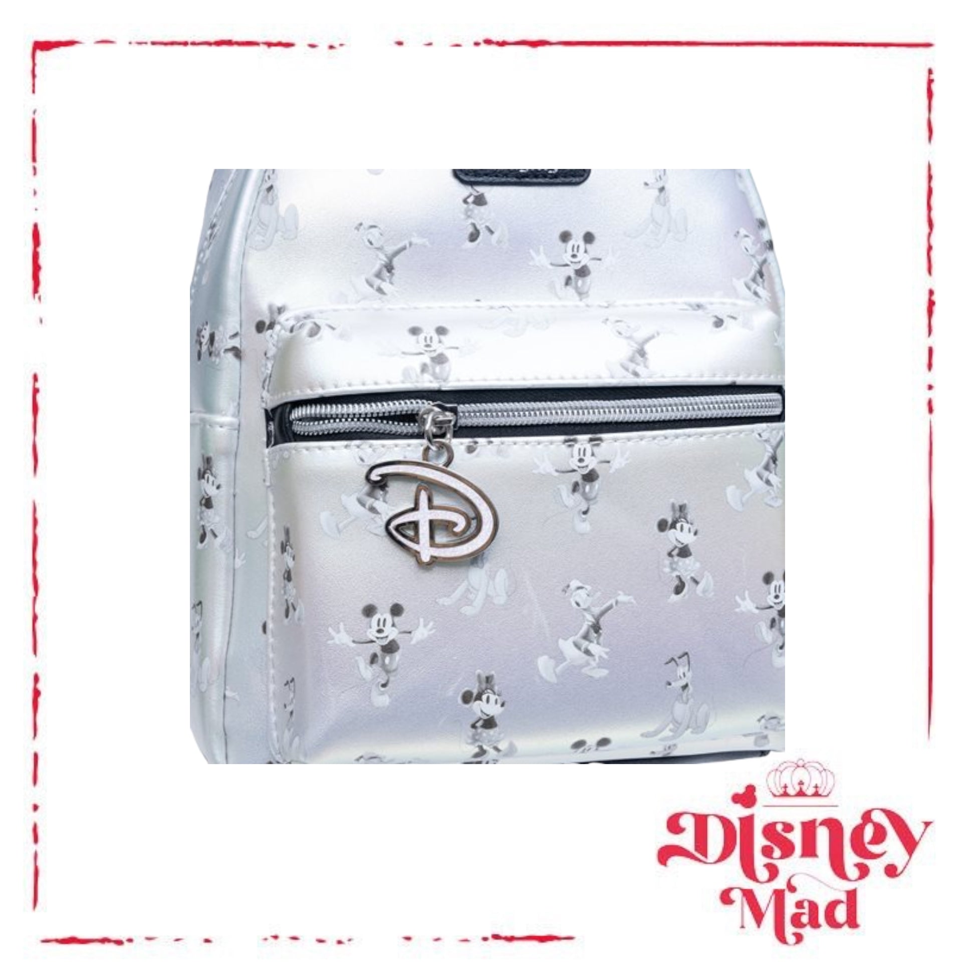 Entertainment Earth Exclusive! Are you ready to join Mickey, Minnie, Donald, and Pluto in the Disney 100 celebration? You will be with our Disney 100 Heritage Sketch Mini-Backpack - Entertainment Earth Exclusive! It is made of faux leather and features a top zipper closure and front zippered pocket, adjustable straps, matching themed lining, silver hardware, enamel zipper charm, and printed details. This mini-backpack approximately measures 9-inches wide x 10 1/2-inches tall x 4 1/2-inches long