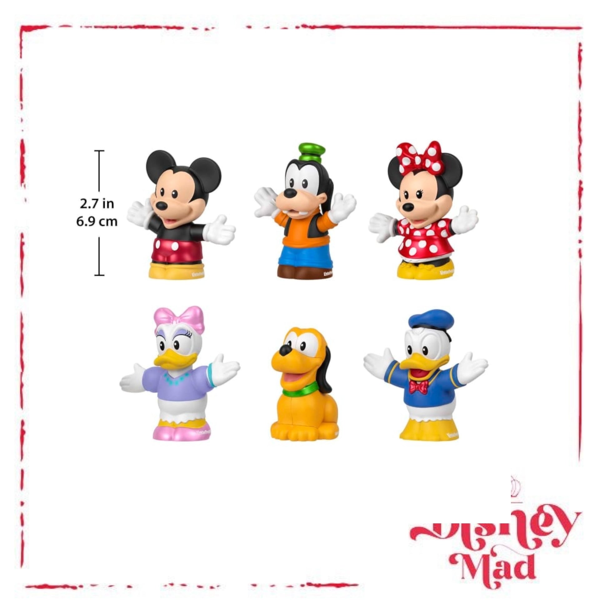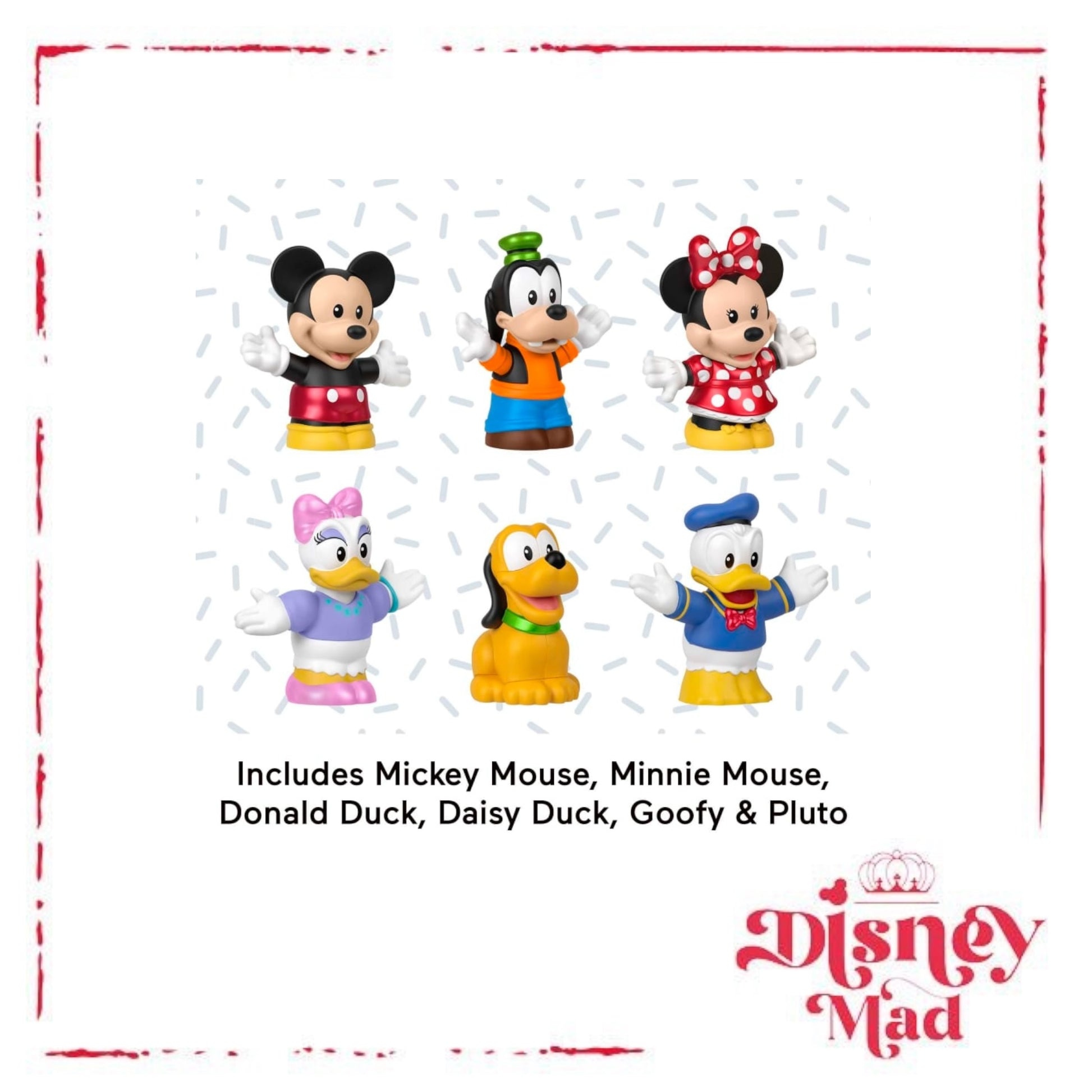 - Includes 6 figures: Mickey Mouse, Minnie Mouse, Donald Duck, Daisy Duck, Goofy and Pluto