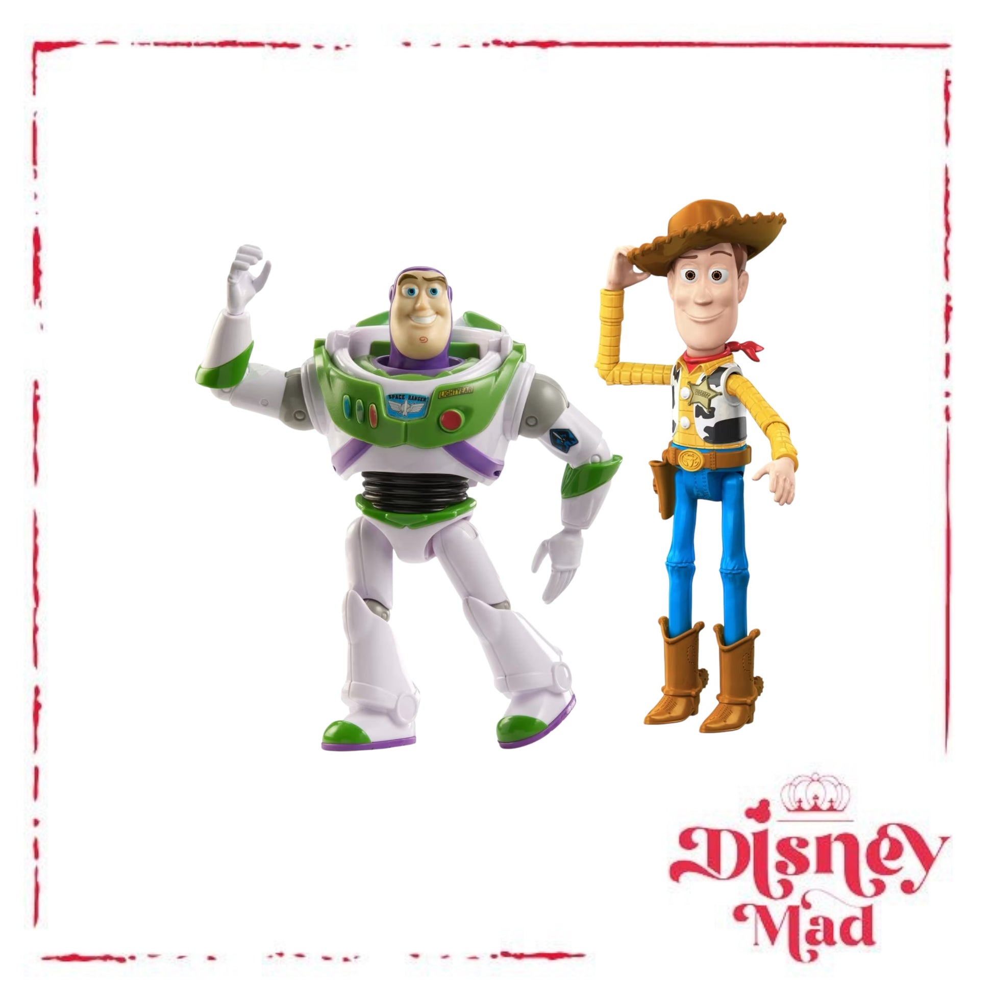 - With movie-authentic design, Buzz is at-the-ready for Star Command missions in his signature space suit and Woody is ready for some round up fun in his iconic Sheriff outfit with removable hat.