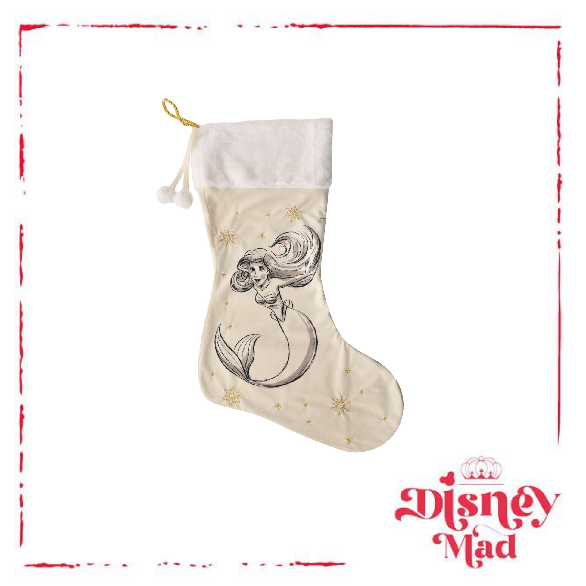 This Disney stocking would look beautiful hanging on any mantel this Christmas morning. With cute pompom detailing, a delightful print of Ariel from ' The Little Mermaid' and a golden star design, this stocking is sure to brighten any Disney fan's day. Detail: Disney Christmas Stocking Ariel from 'The Little Mermaid' print Perfect for Christmas Morning 20"