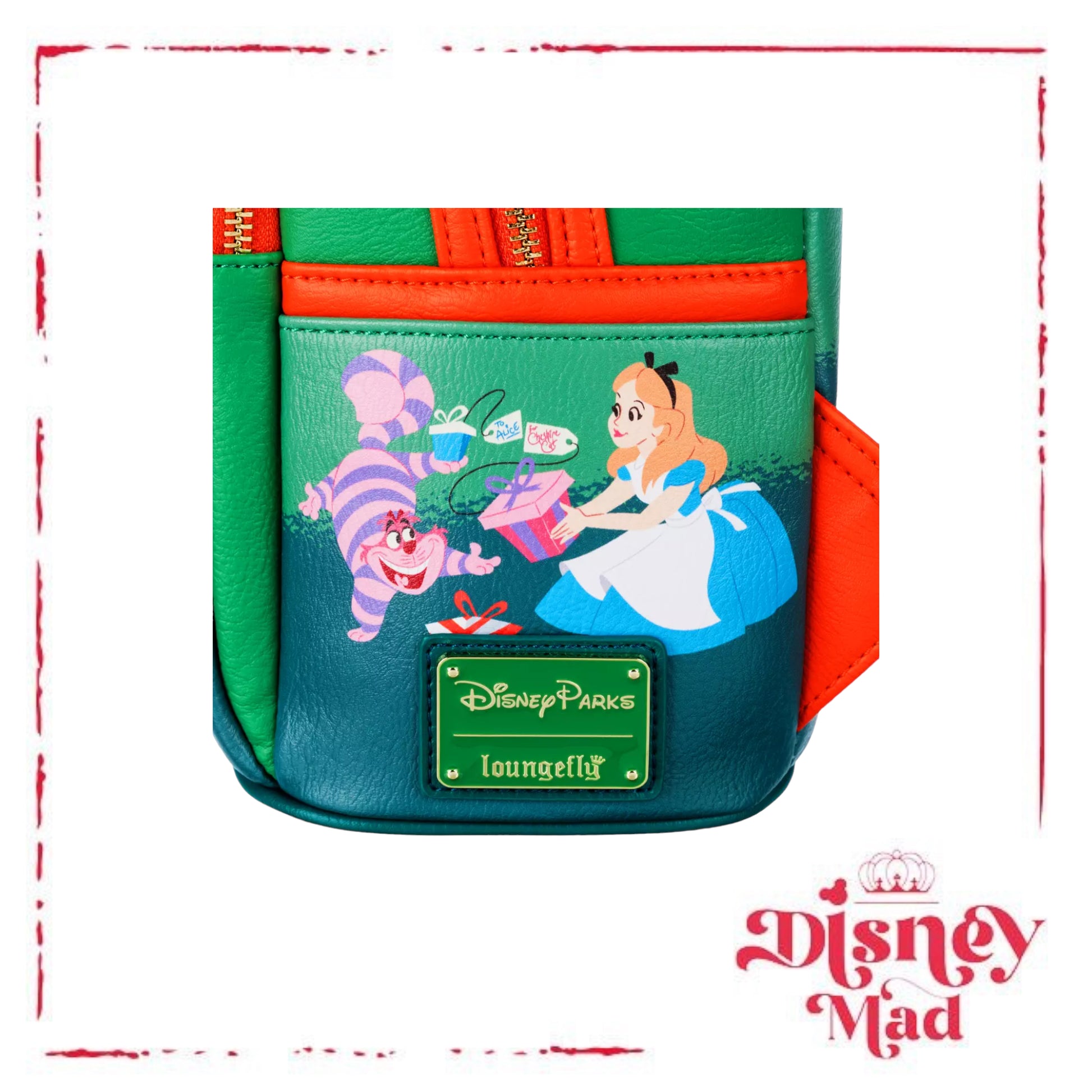 - Side features Alice and Cheshire Cat