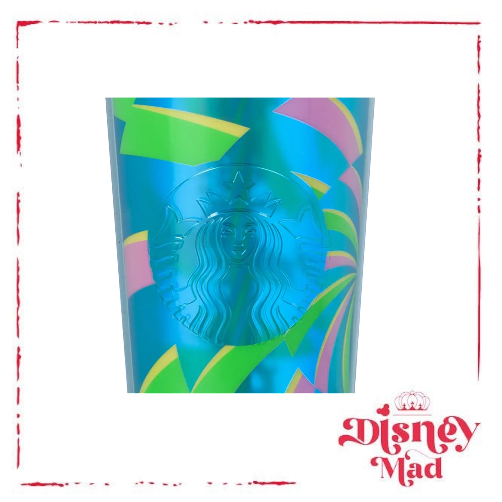 Fans of the delicious Parks lollipops will get a lick out of this Starbucks® tumbler inspired by the popular candy. Featuring a faceted blue translucent domed lid, its colorful allover swirled exterior resembles the Mickey icon-shaped treat. The coordinating multicolored Disneyland Resort logo includes a lollipop that'll make you hunger for your next trip to the Parks.