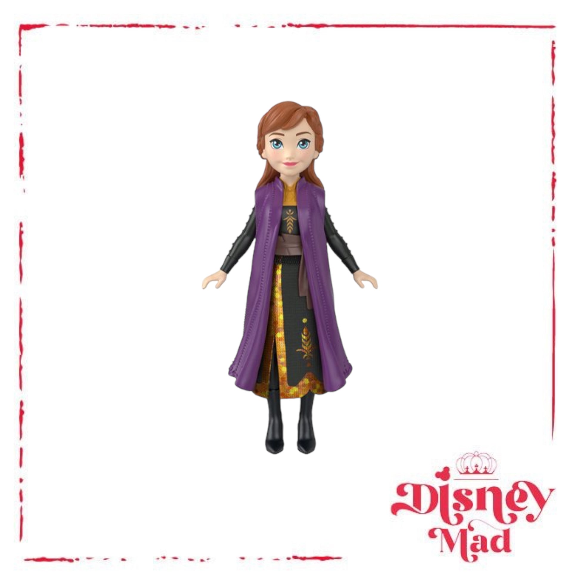 Meet this Anna doll, inspired by the resilient and optimistic queen from Disney's Frozen 2, in a charming scale with movable joints! This posable small doll shines in her signature fashion, featuring a removable soft skirt and soft plastic cape. Doll measures approximately 3 1/2-inches tall. Ages 3 and up.