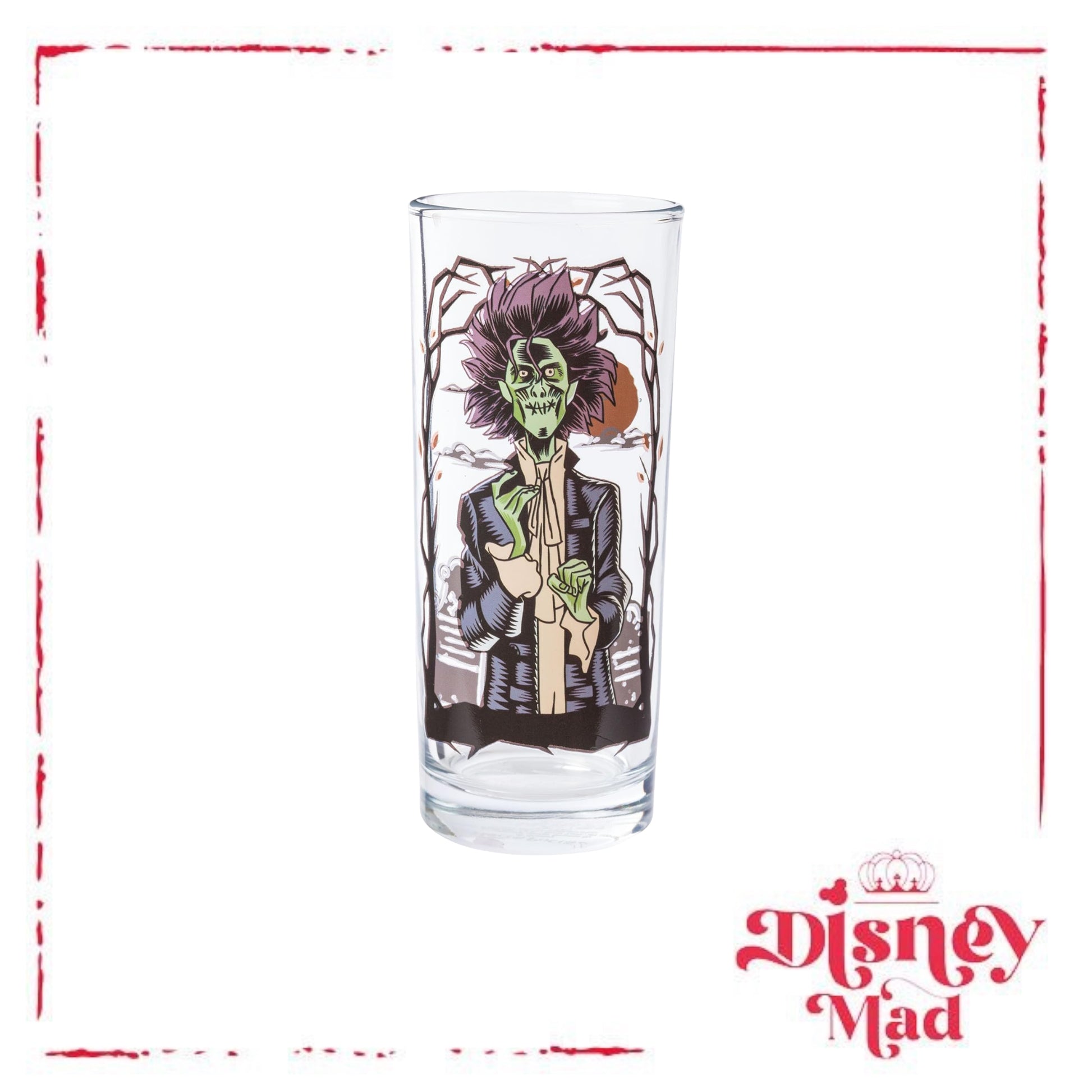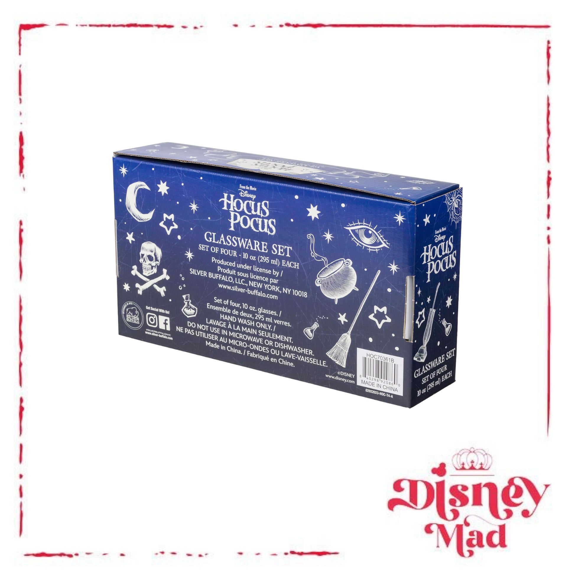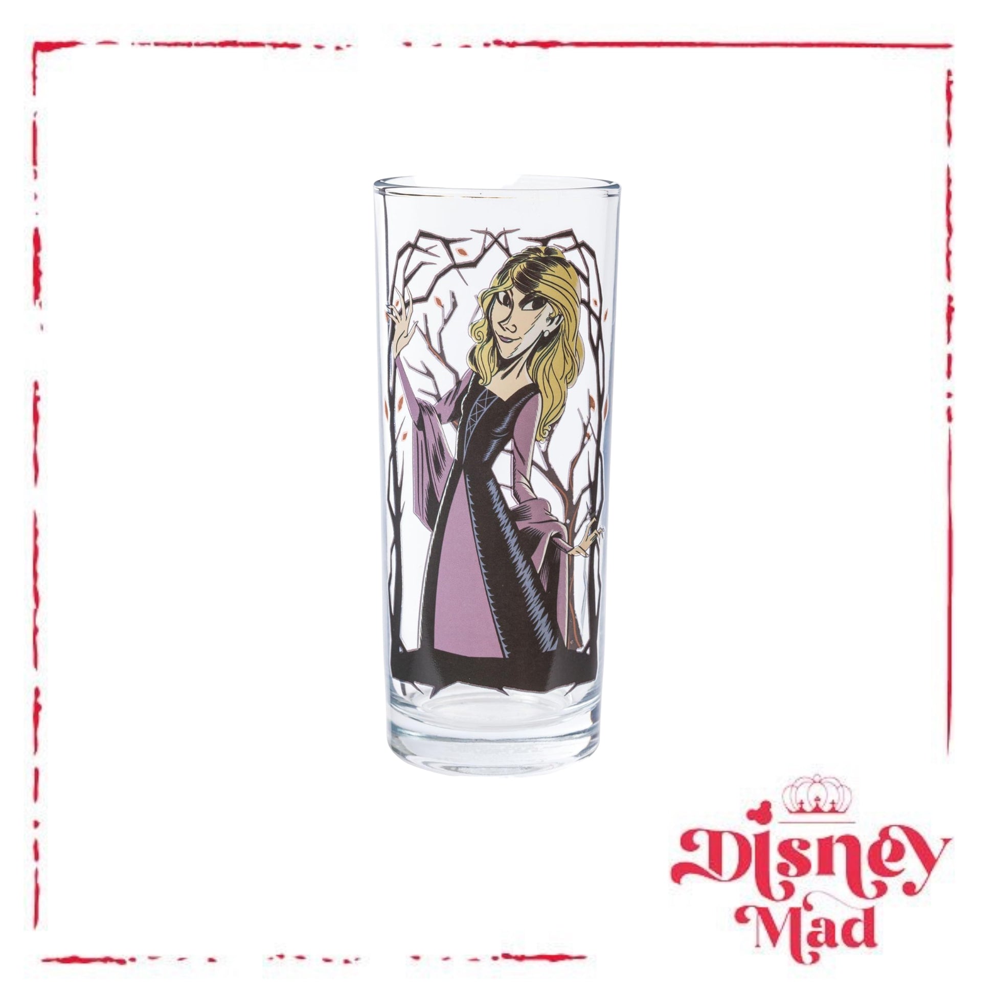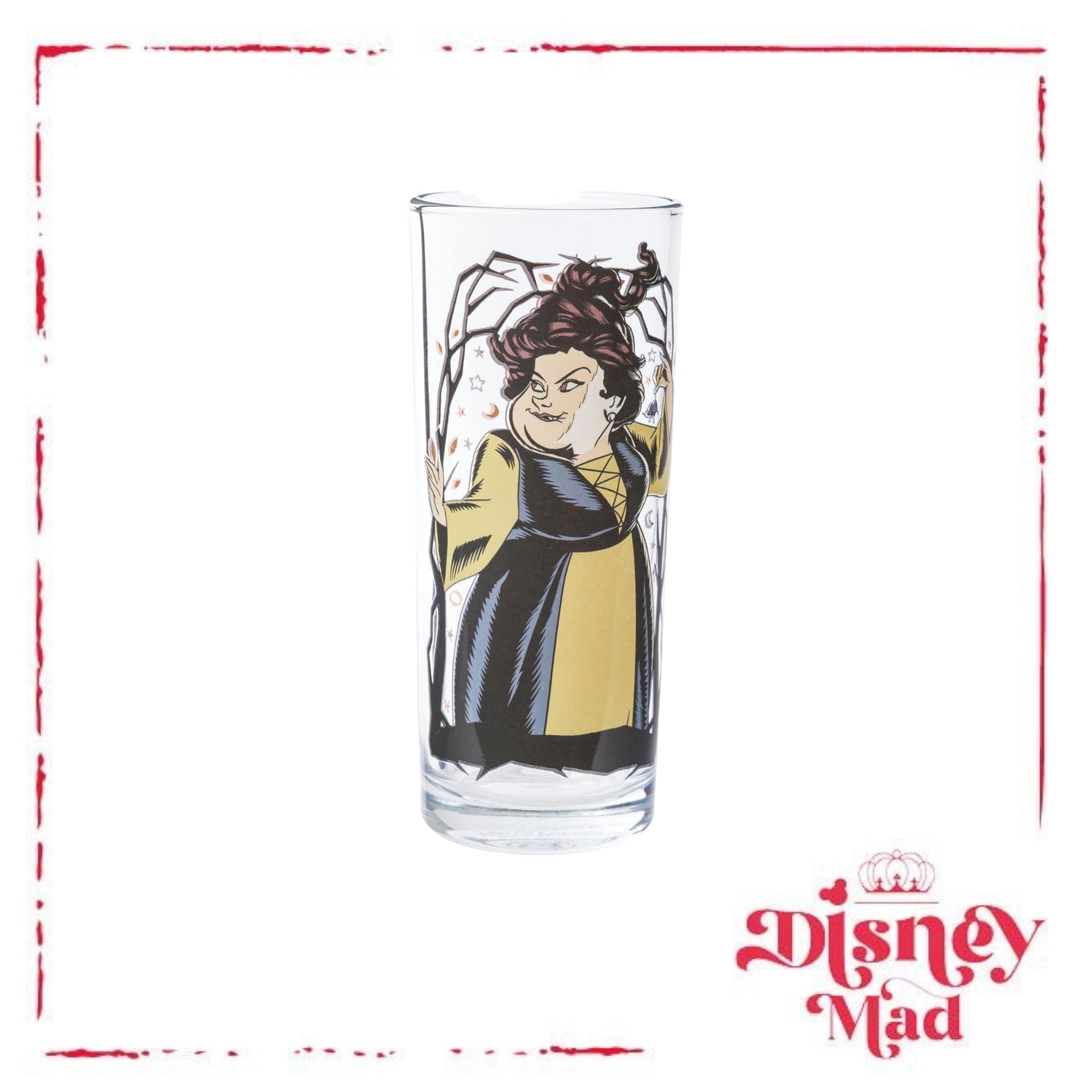 - TUMBLER SET: This 4-pack of glass tumblers holds up to 10 ounces of your favorite beverage and features your favorite witchy characters from Hocus Pocus against twisty Tree Frames.