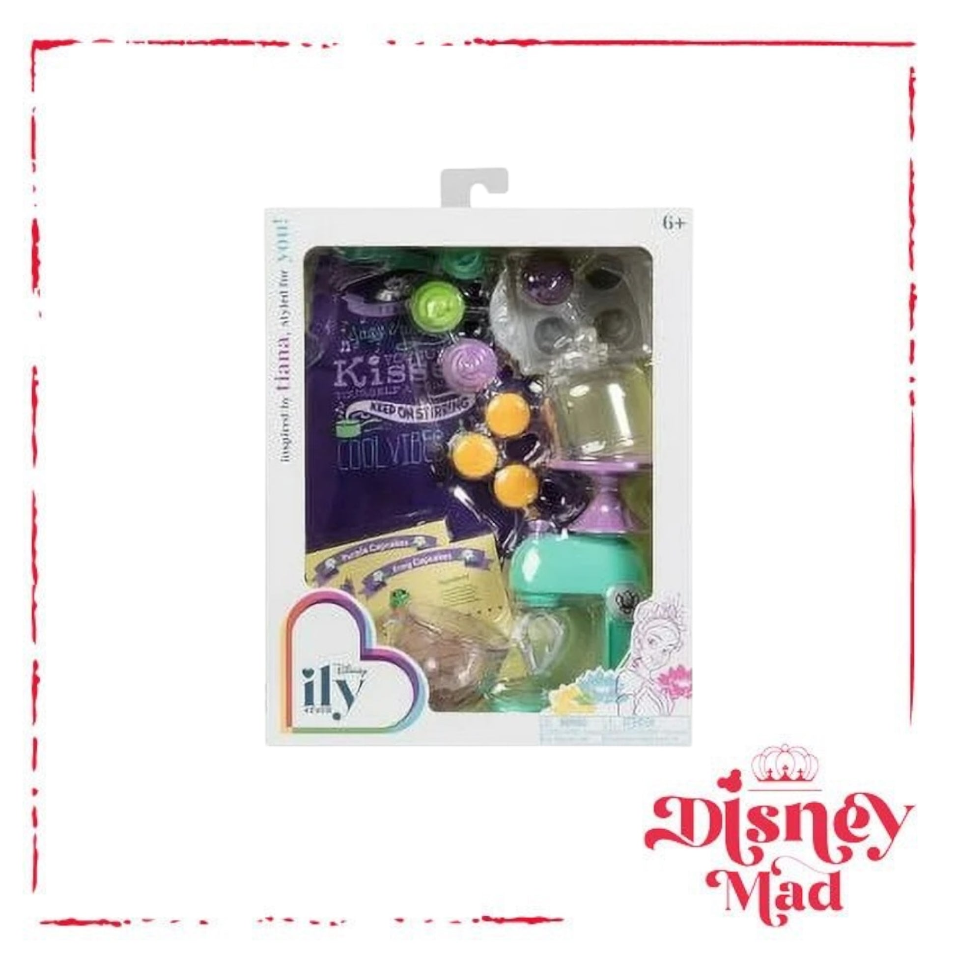 - Disney ily 4EVER is an 18-inch doll brand inspired by beloved Disney stories and characters. It includes a line of dolls, trendy fashions and aspirational accessories that celebrate everything kids love about Disney. Inspired by characters such as Ariel, Minnie Mouse, and Tinker Bell, and themes such as outdoor activities and culinary arts, this line combines the best of Disney with the latest fashions and must-have accessories! Inspired by Tiana, this Disney ily 4EVER baking set will have your 18-inch doll whipping up delicious treats! Put on the apron and get your doll ready, it’s time to make some yummy cupcakes. This detailed baking set features a manual working mixer with mixing bowl, a cupcake pan, and four cupcakes. Put the finishing touch on the cupcakes using the colorful icing toppers and place your favorite on the cake stand for display. Included are two recipe cards for real baking fun! Accessory set is shown on Inspired by Tinker Bell doll and is compatible with most 18-inch dolls.