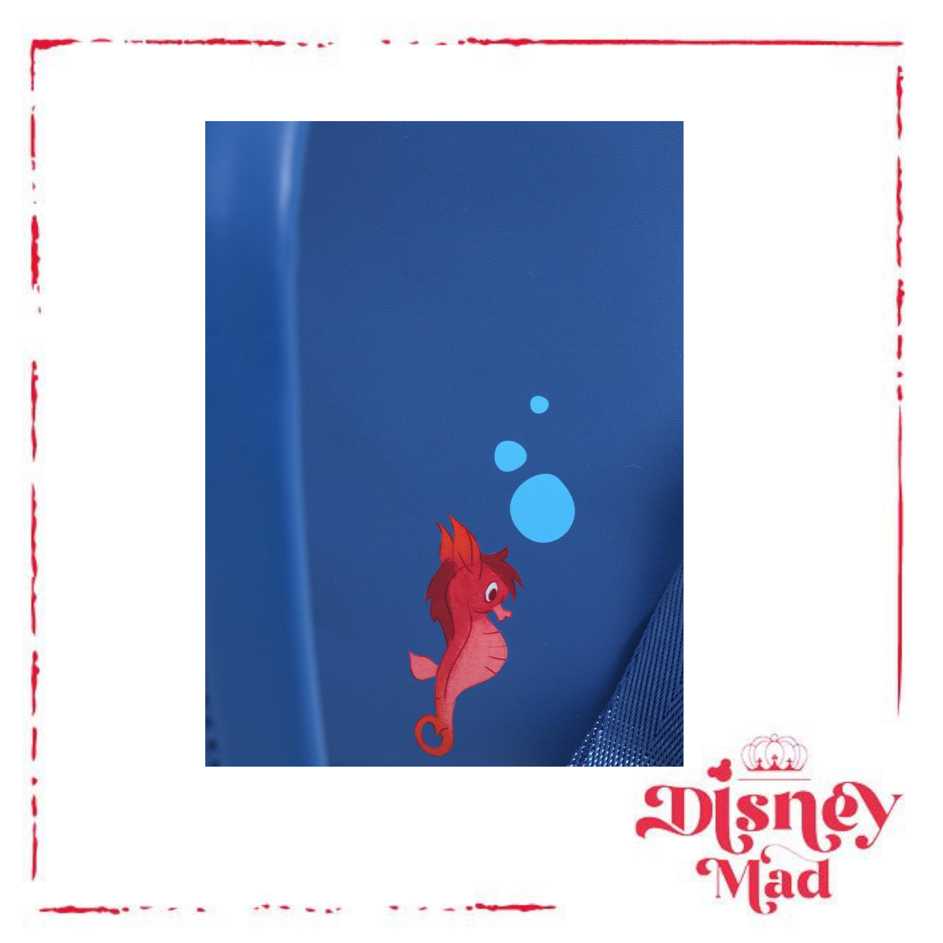 Help Pinocchio find Geppetto by taking him on all of your travels with this mini backpack! Just make sure you don't scare anyone away by asking for Monstro! Inspired by the Disney animated classic, this Loungefly bag features a scenic front graphic of Pinocchio searching underwater for his father. Also features two side pockets, a die-cut appliqué for Pinocchio's nose, gold-toned hardware, an enamel brand badge, adjustable shoulder straps, and a nautical-themed interior lining pattern.