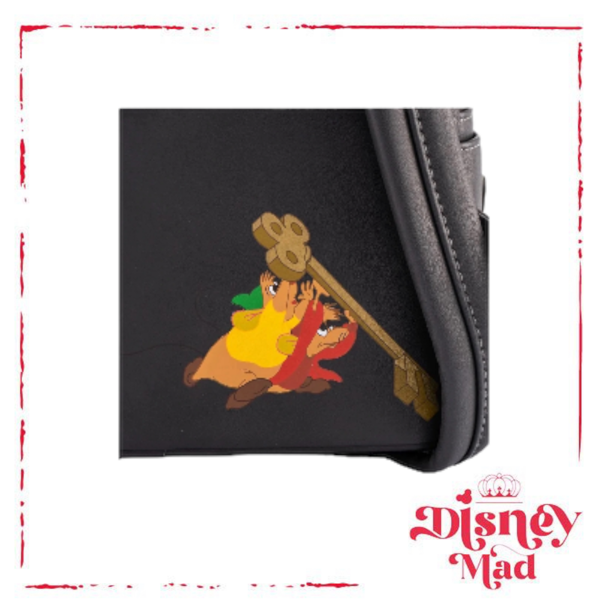 The key to a villainous outfit is the accessories. The Loungefly Disney Cinderella Evil Stepmother and Stepsisters Villains Scene Mini Backpack is here to rule the roost. Through a golden keyhole you’ll find Cinderella, while her stepmother and stepsisters loom over the view with unapproving looks. On the back you’ll find Jaq and Gus carrying the key that may set Cinderella free.