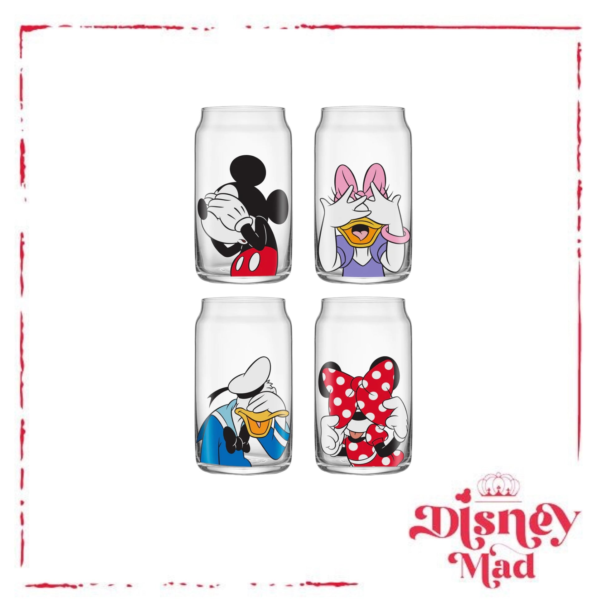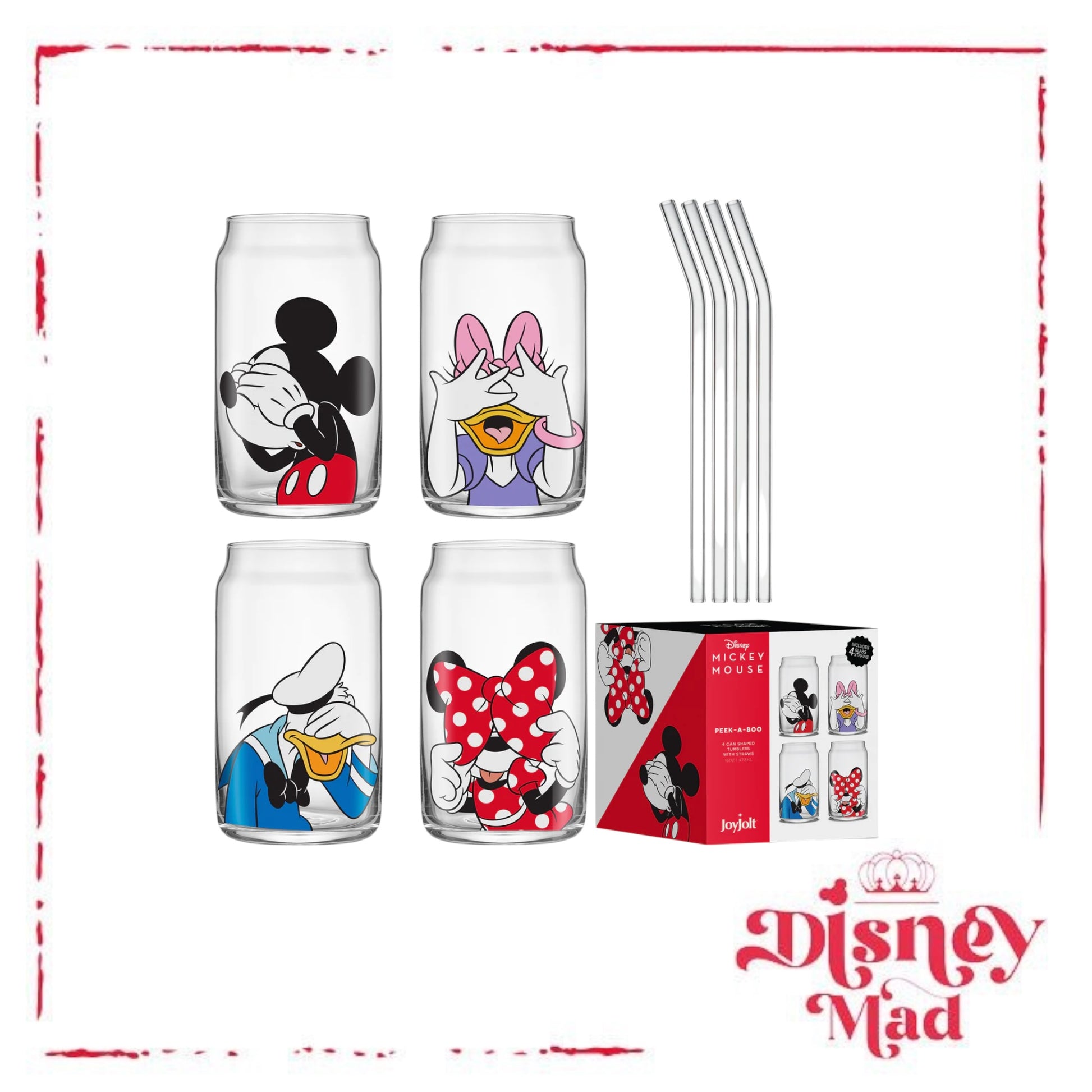Discover enchantment in every sip with JoyJolt's Disney Mickey and Friends Peek-a-Boo Collection glass cups! These can-shaped tumblers each feature a different playful peek-a-boo design of your beloved Disney characters - Mickey, Minnie, Daisy, and Donald. Perfect for Disney lovers of all ages, these tumblers are ideal for water, sodas, and all your favorite beverages, adding a magical tough to your everyday moments. Elevate your home with this spellbinding collection that promises to bring joy, color, and a touch of Disney magic to your table.