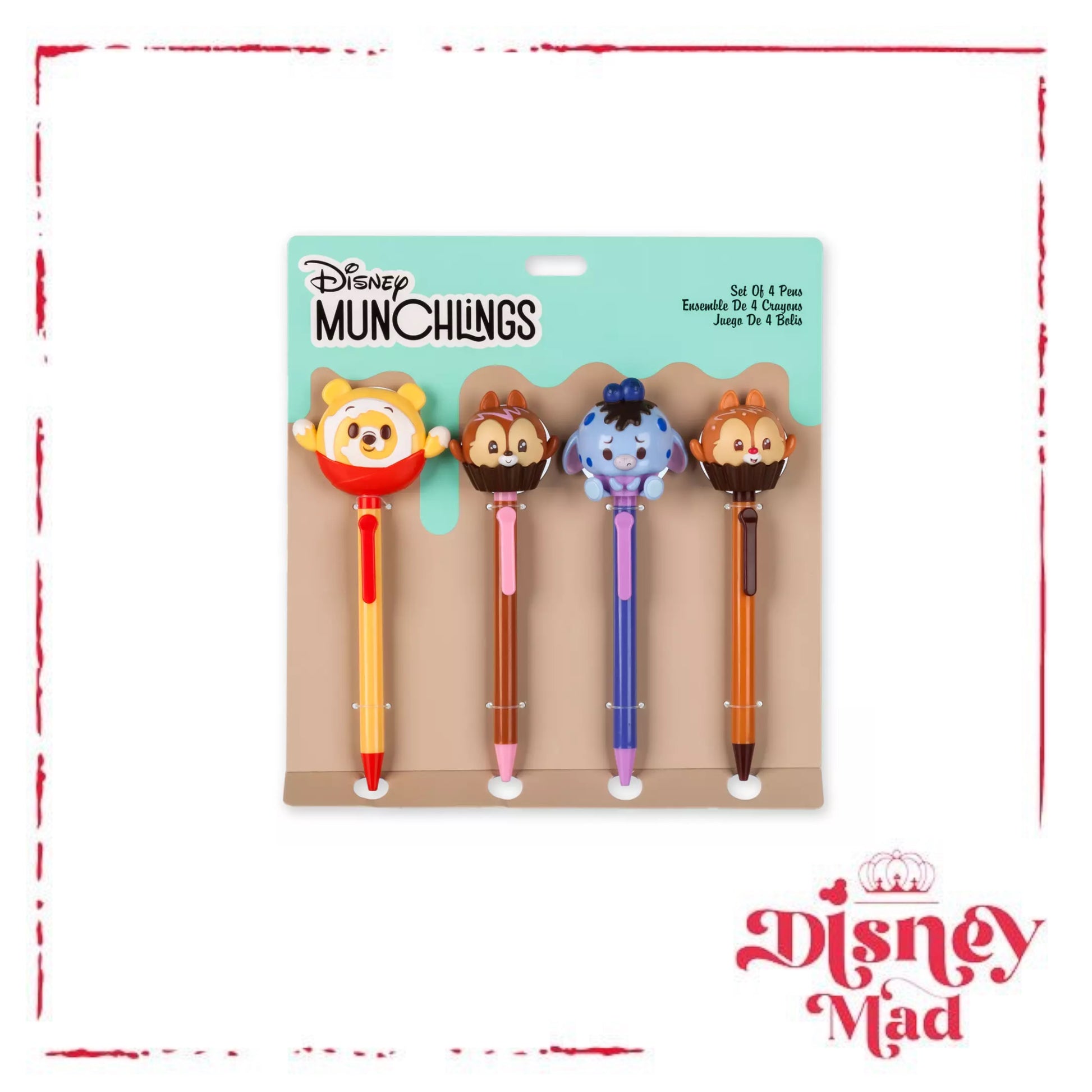 Introducing the cutest writing partners to inspire you to put pen to paper. This Disney Munchlings pen set features four Disney pals re-imagined as Disney Munchlings Sweet Treats and Baked Treats including Chip Dark Chocolate Ganache Truffle, Dale Dark Chocolate Ganache Truffle, Winnie the Pooh Honey Cake and Eeyore Blueberry Muffin. Each of the four pens has different coloured ink so whatever you write or draw, you're sure to take note of how much they make you smile.