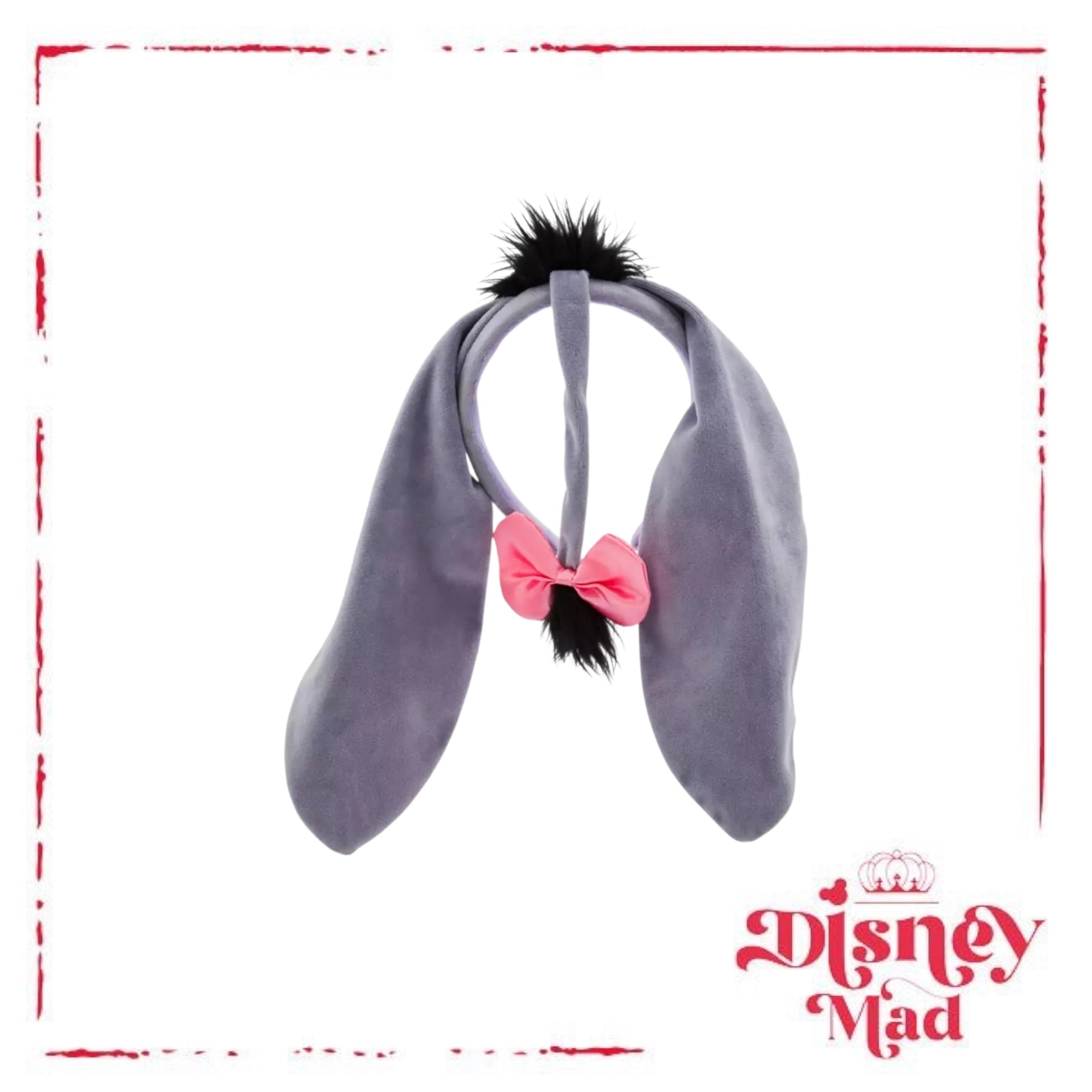 You're sure to be noticed in this adorable Eeyore ear headband inspired by the little gray donkey, from the long soft ears and fluff of faux fur to his signature tail with a fuzzy tuft at the end and pink satin bow. You might even fool Pooh and his pals from the Hundred Acre Wood, but unlike the actual Eeyore, your tail is designed to stay attached.