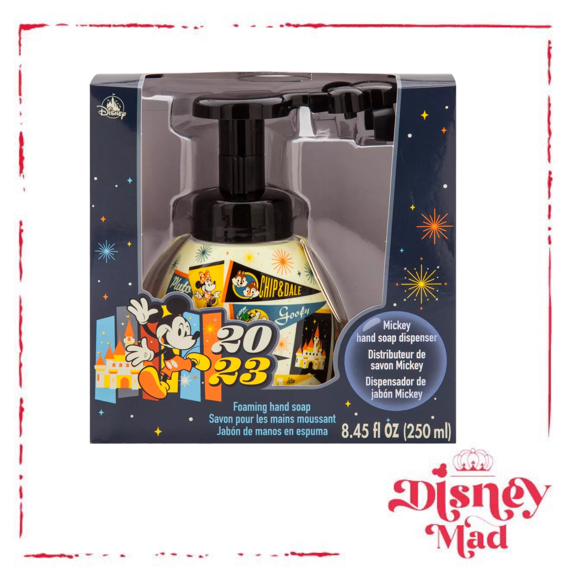 The whole family can enjoy lots of good clean fun with this Mickey and Friends 2023 Hand Soap Dispenser. Mickey is joined by Minnie, Goofy, Pluto and more on this pump action dispenser that provides foaming soap with the fresh scent of grapefruit.