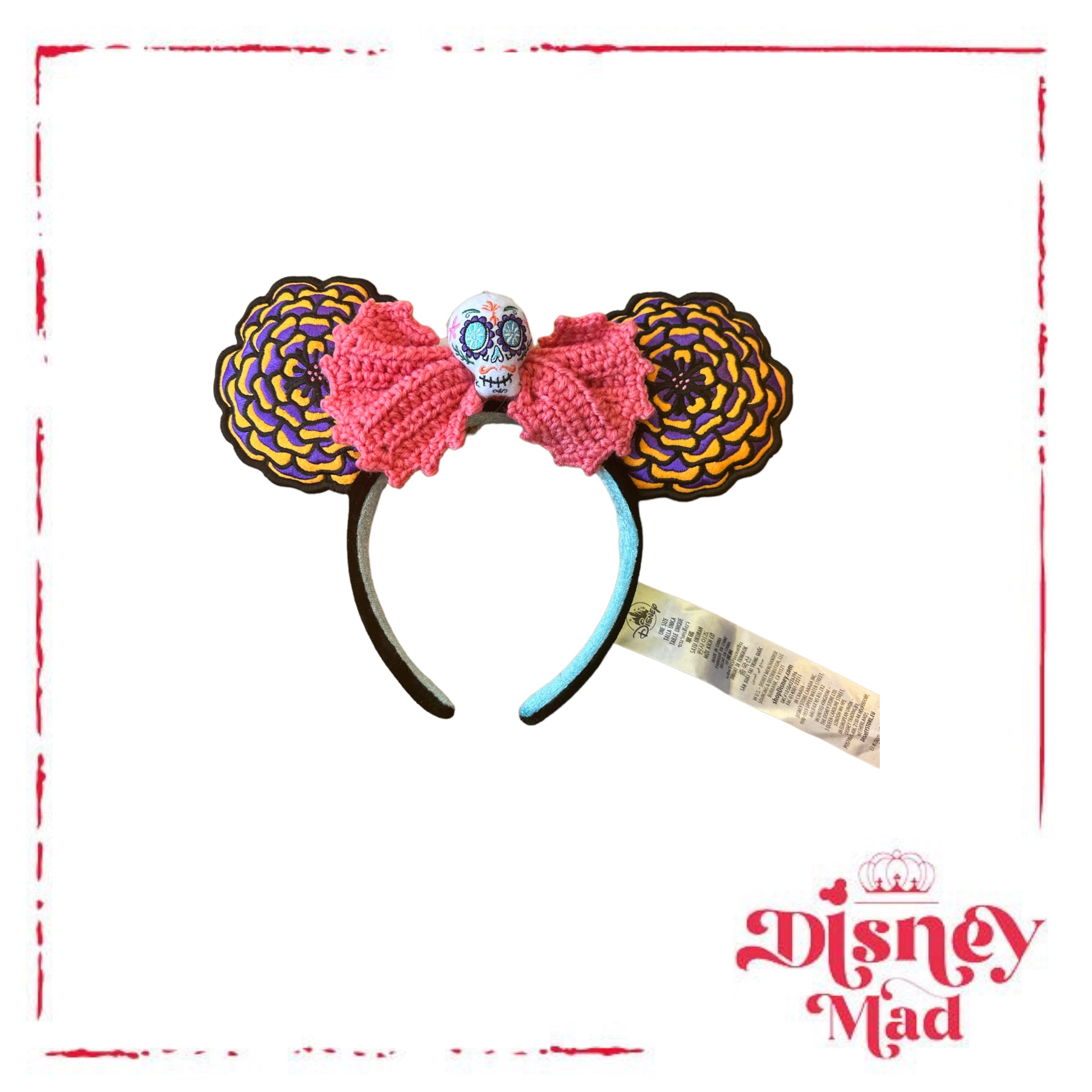 Inspired by the film's Dia de los Muertos theme, this ear headband features a colorful skull, crotchet bow, and floral ears. These make the perfect accessory for celebrating your wildest dreams.