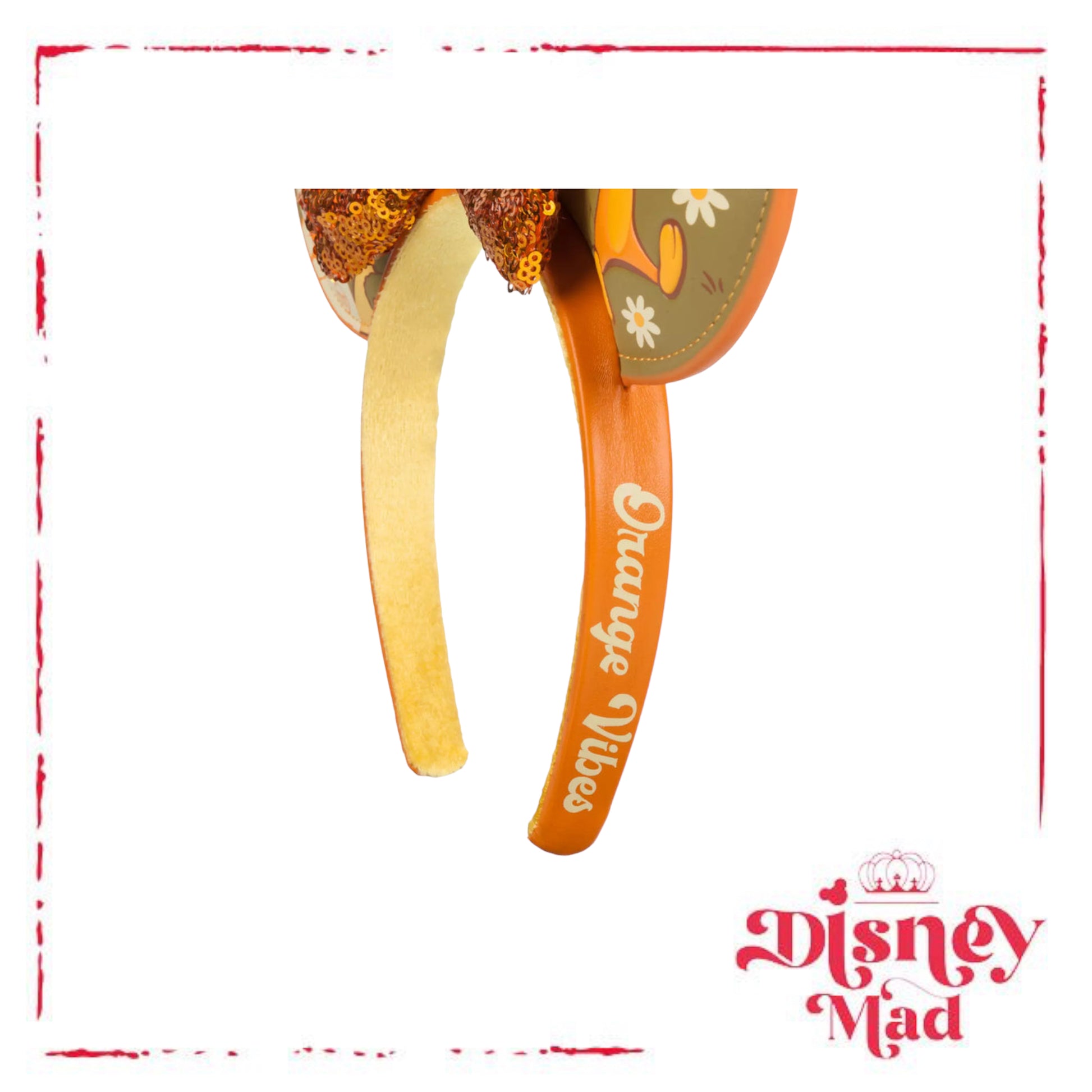 - Simulated leather headband exterior with ''Orange Vibes'' text