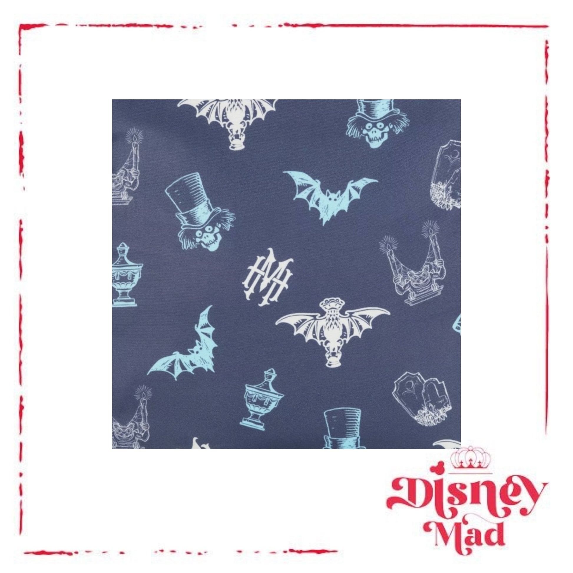 Side slip pockets with allover bats and Haunted Mansion initials logo