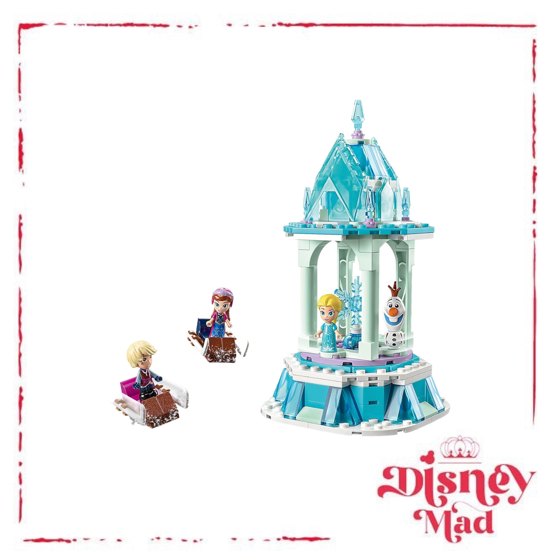 Disney Princess Anna and Elsa's Magical Merry-Go-Round, Frozen Castle Inspired Playset with Princess Micro Dolls and Olaf Figure