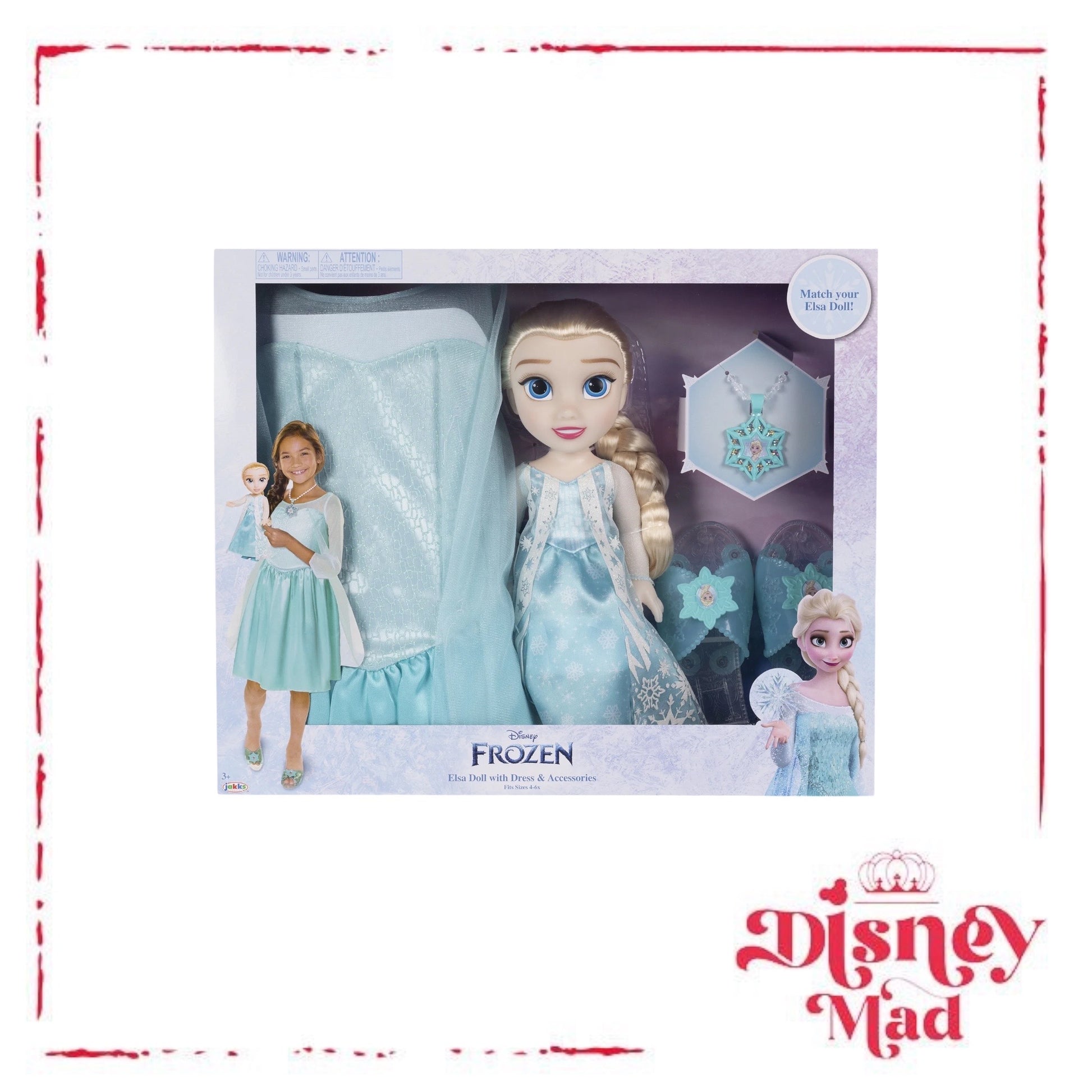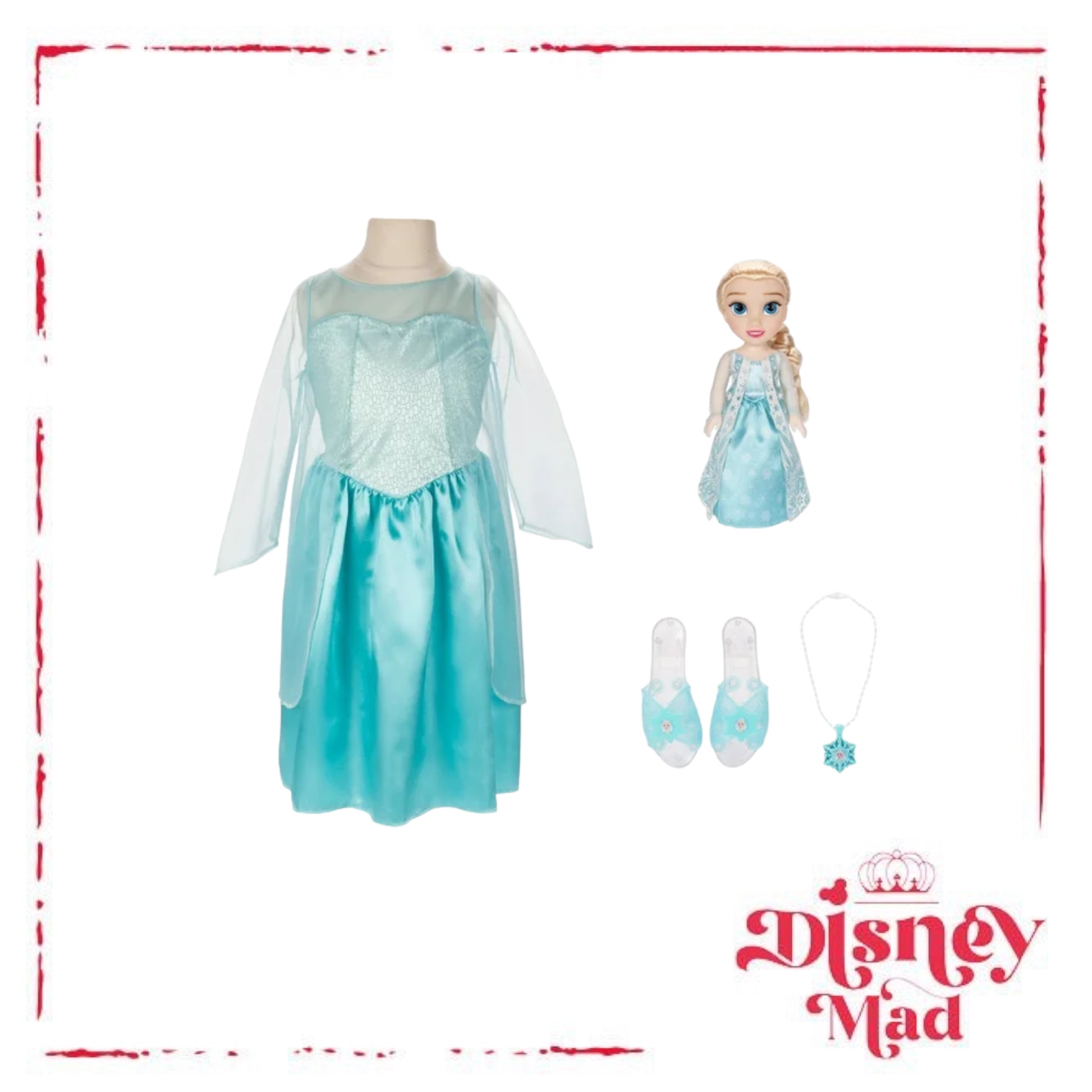 - Includes: 1 Elsa Doll, 1 Elsa Doll Dress, 1 Pair of Elsa Doll Shoes, 1 Elsa Child Dress, 1 Pair of Elsa Child Shoes, 1 Elsa Child Necklace.