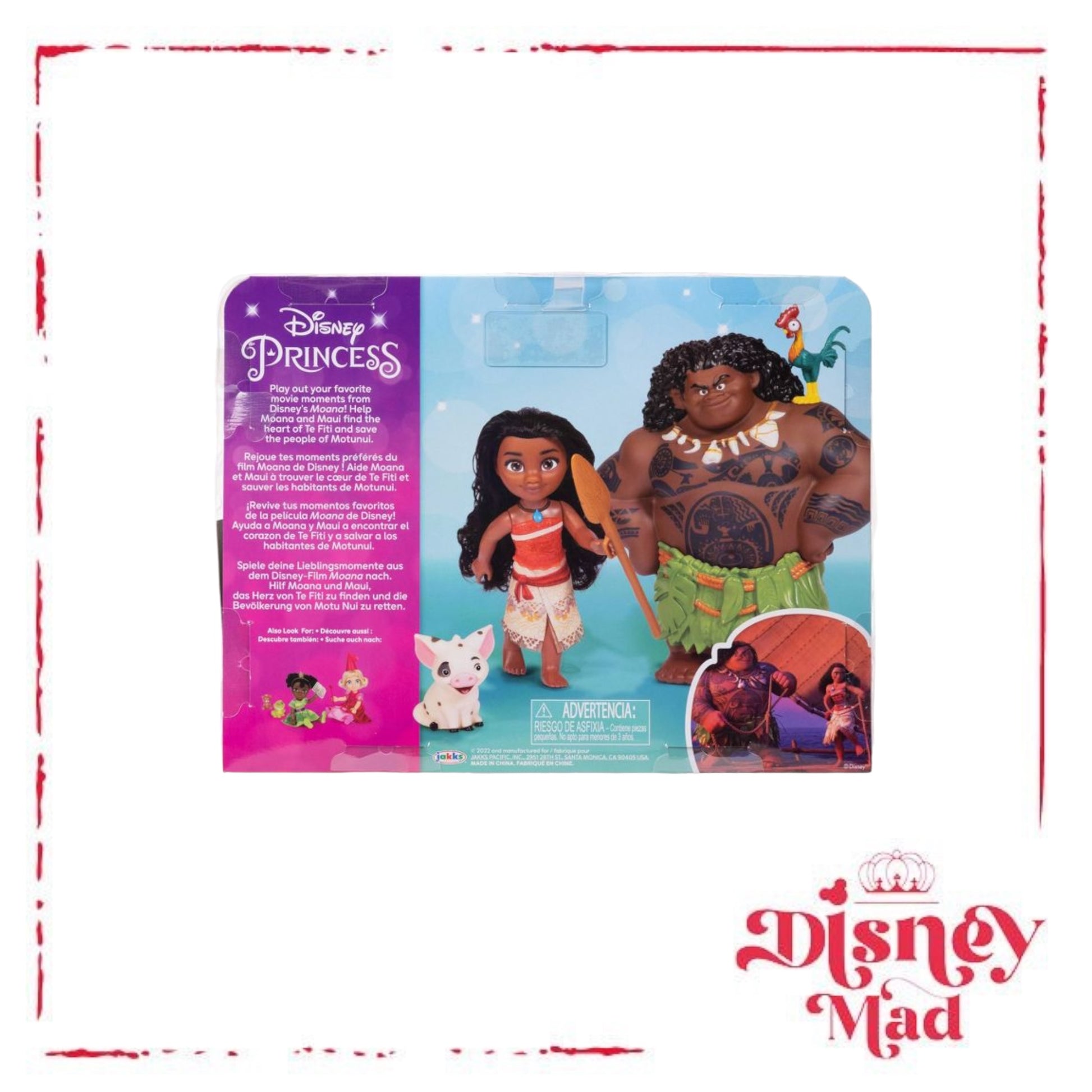 Join Moana and Maui on grand adventures across the ocean and play out your favorite Moana movie moments with this Disney Princess Moana & Maui Petite Gift Set. Moana is in her adventure outfit and ready for anything with her handy oar with Maui by her side! Pua and Heihei are there for the fun as well! Moana stands at six inches tall, perfect for on-the-go and easy play. This complete petite set is perfect for the ultimate Moana fan!