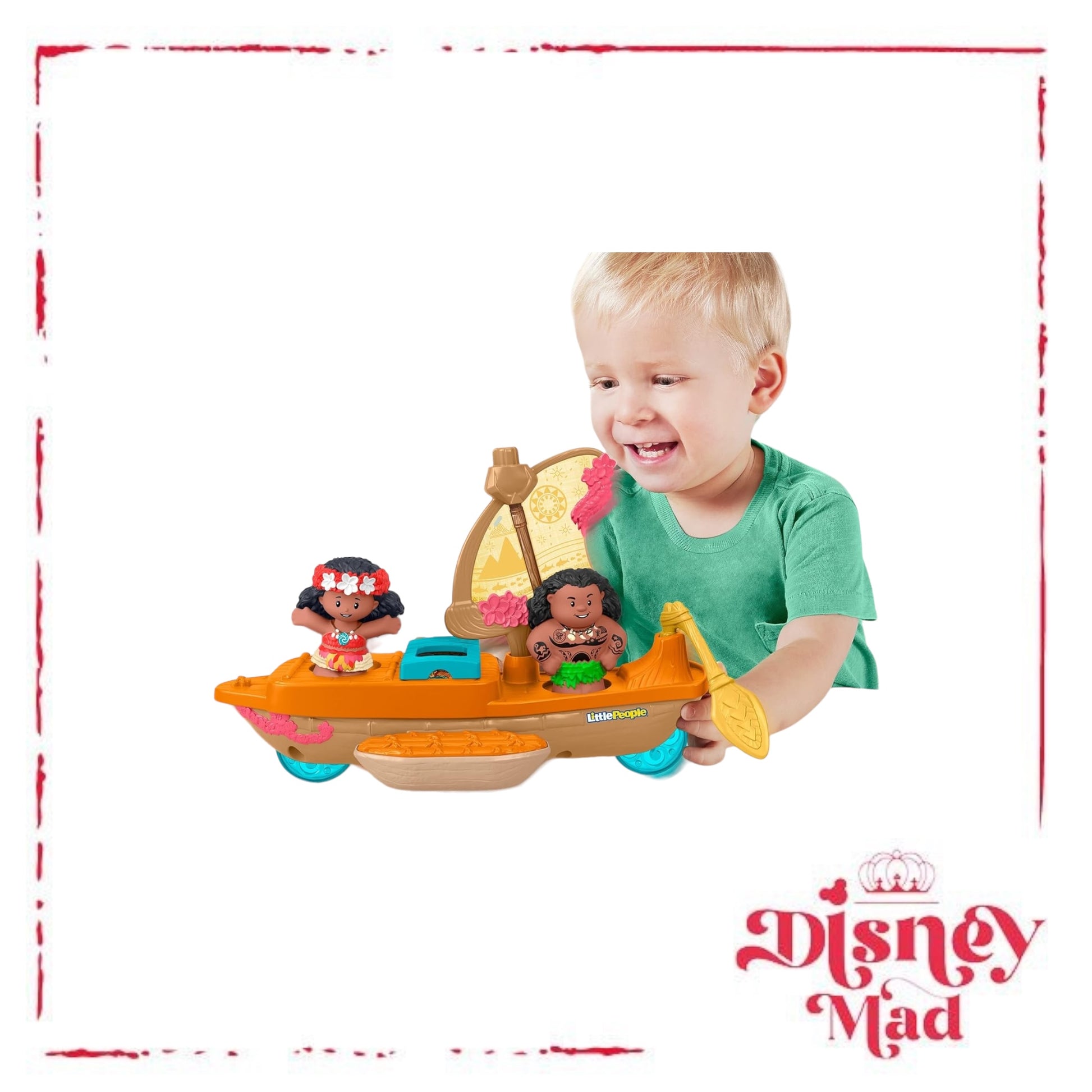 - Little People toy sailboat and figure set featuring Disney characters Moana and Maui!