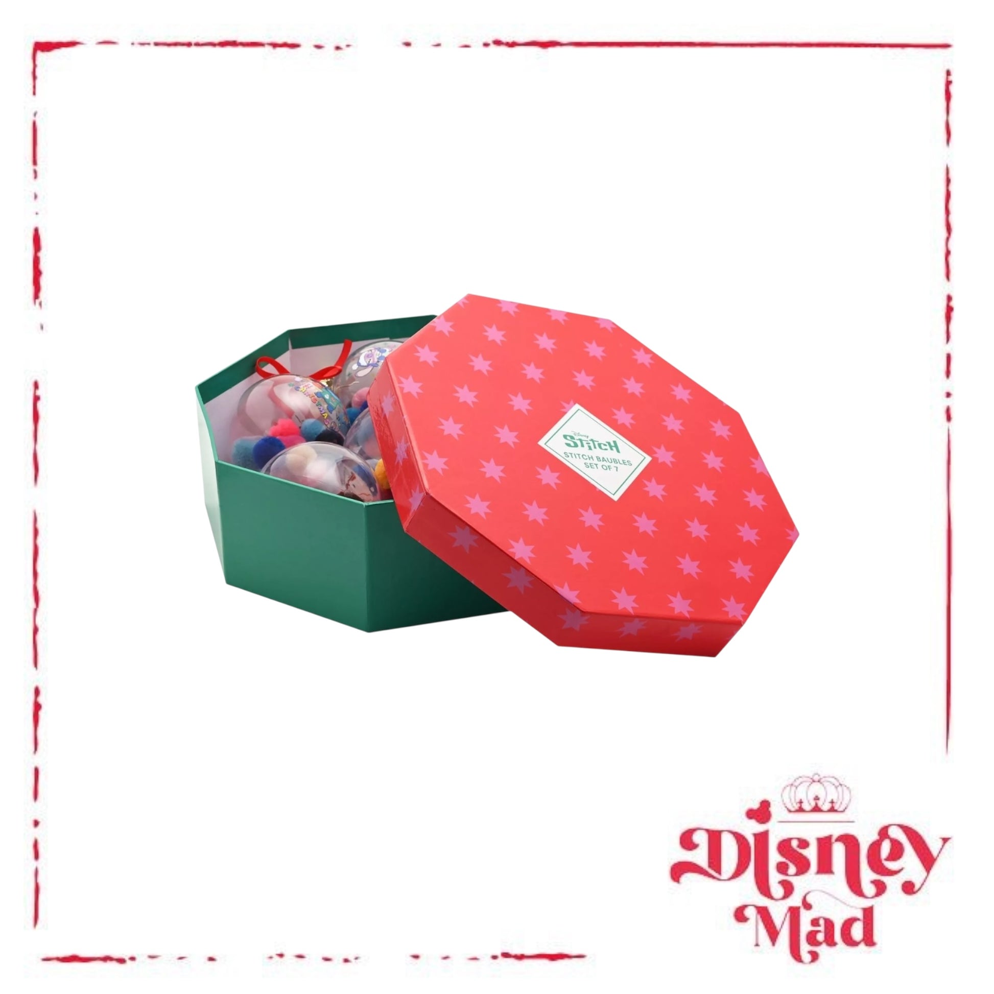 Disney Set Of 7 Baubles With Gift Box -Stitch With Pom Pots