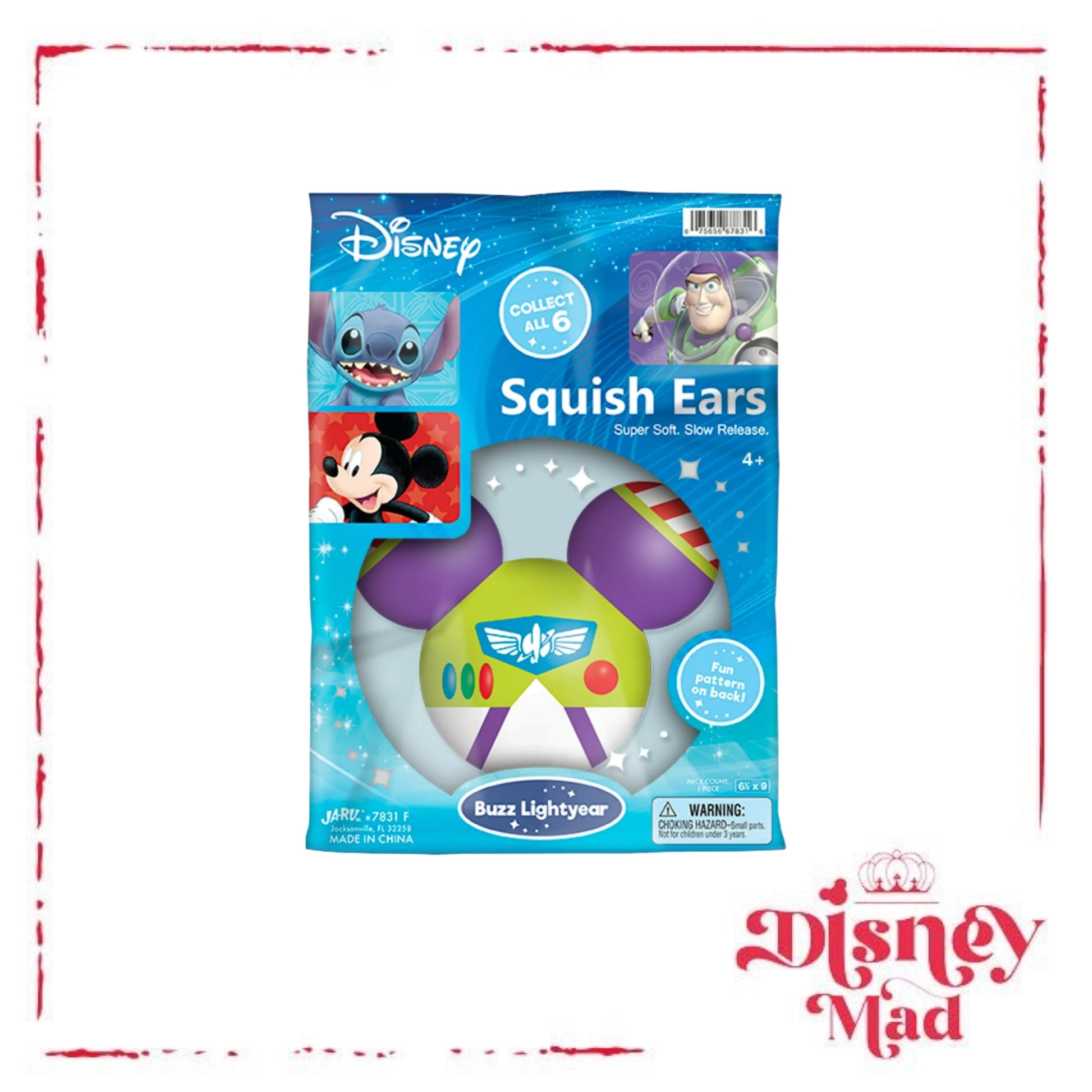 The Ja-Ru Disney Squish Ears Collectible slow-rise squishy foam ears are so much fun. These colorful ears have two different complimentary designs on each side. Perfect for ADD/ ADHD / autism to help focus better or anxiety and stress relief. They measure approximately 5 inches in diameter. There are 6 characters to collect: Mickey Mouse, Minnie Mouse, Ariel from the Little Mermaid, Stitch from Lilo and Stitch, Winnie the Pooh, and Buzz Lightyear from Toy Story and Lightyear movies. Collect them all! Squishy foam slow rises to promote stronger hands and great fidget toy. Recommended for ages 4 and up.