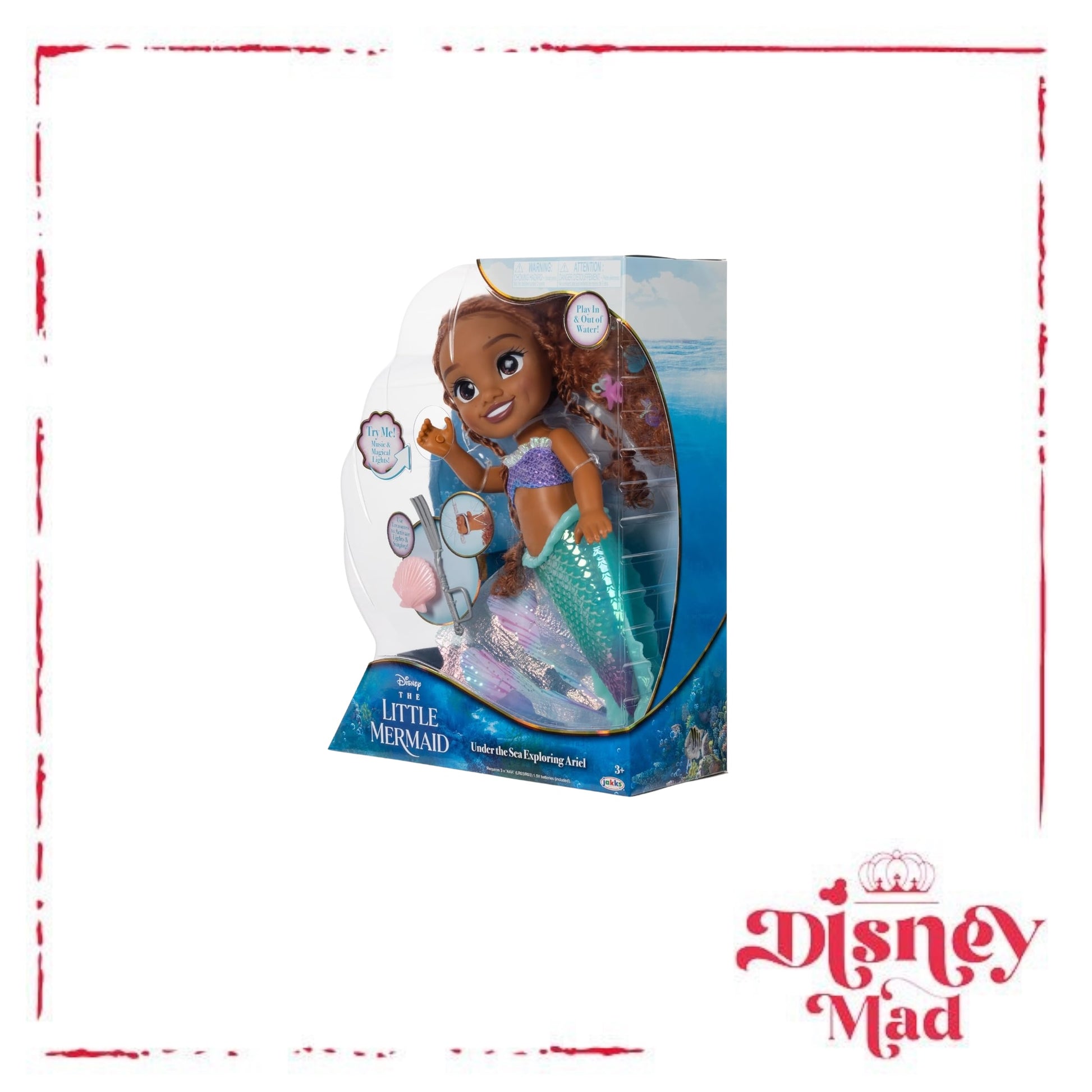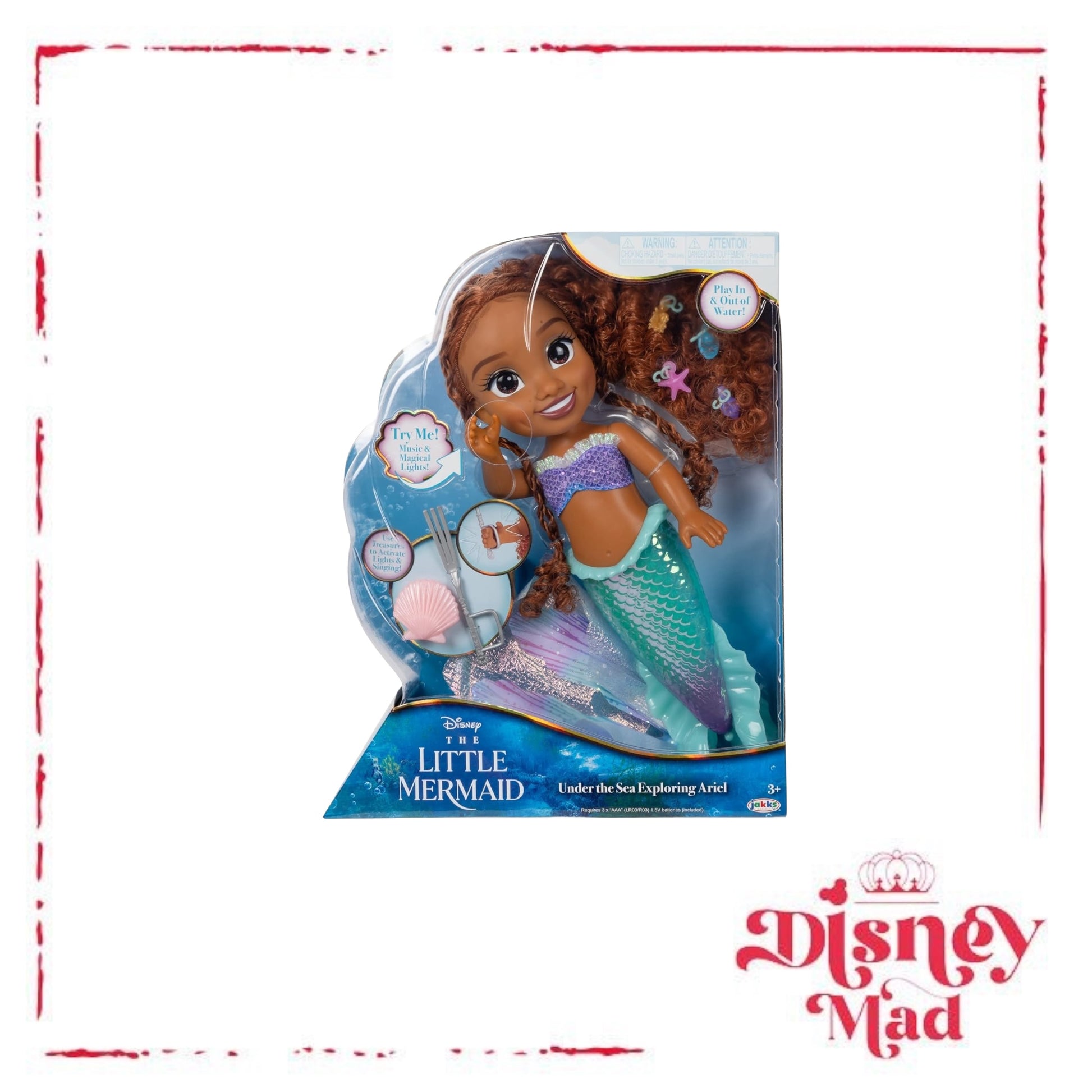 - FROM DISNEY’S THE LITTLE MERMAID: This gorgeous Under the Sea Exploring Ariel doll features film details including Ariel’s beautiful hairstyle, fabric top and iridescent tail with flowing fins!