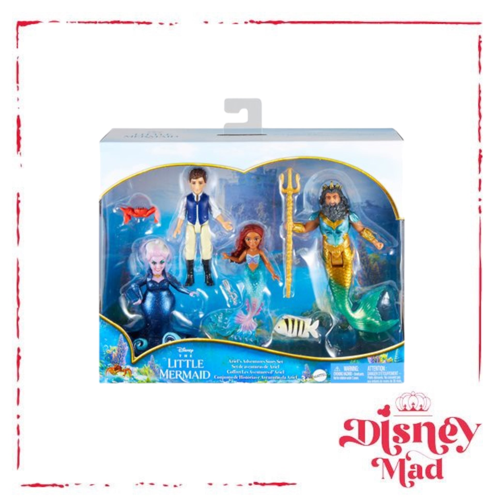 Dive into storytelling with Disney’s The Little Mermaid Ariel’s Adventures Story Set inspired by the exciting theatrical release! Fans can play and display with four posable small dolls - Ursula, Prince Eric, King Triton, and Ariel - plus friends Flounder and Sebastian. Each character doll wears a signature look, and two accessories complete the pack. Fans can collect all the Disney’s The Little Mermaid dolls and playsets to create their own adventures above or below the waves. Each sold separately, subject to availability. Dolls cannot stand alone. Colors and decorations may vary. Ages 3 and up.