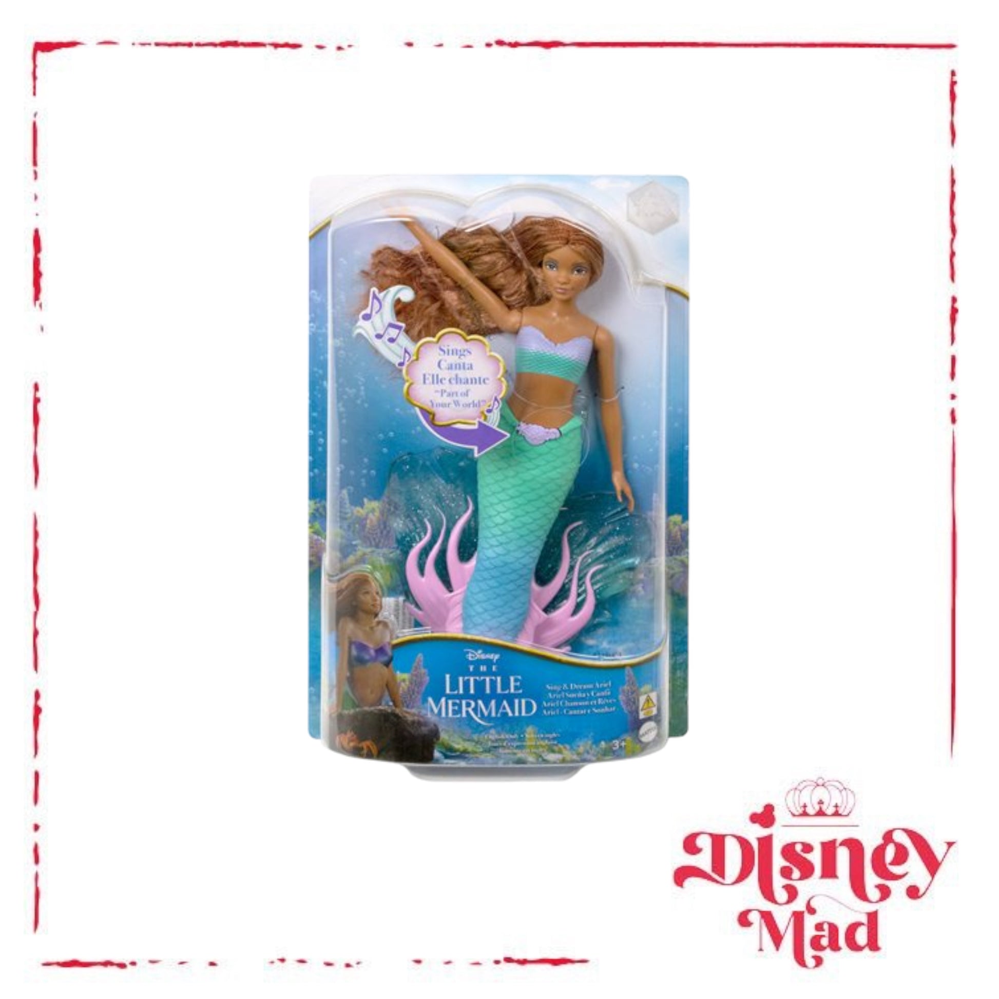 Recreate a favorite musical moment from Disney’s The Little Mermaid with this singing Ariel mermaid doll! Press the shell button on the Sing and Dream Ariel doll and sing along with her song, “Part of Your World”. Fans can collect all The Little Mermaid dolls and create their own adventures above or below the waves! Each doll sold separately, subject to availability. Doll cannot stand alone. Colors and decorations may vary. Ages 3 and up.