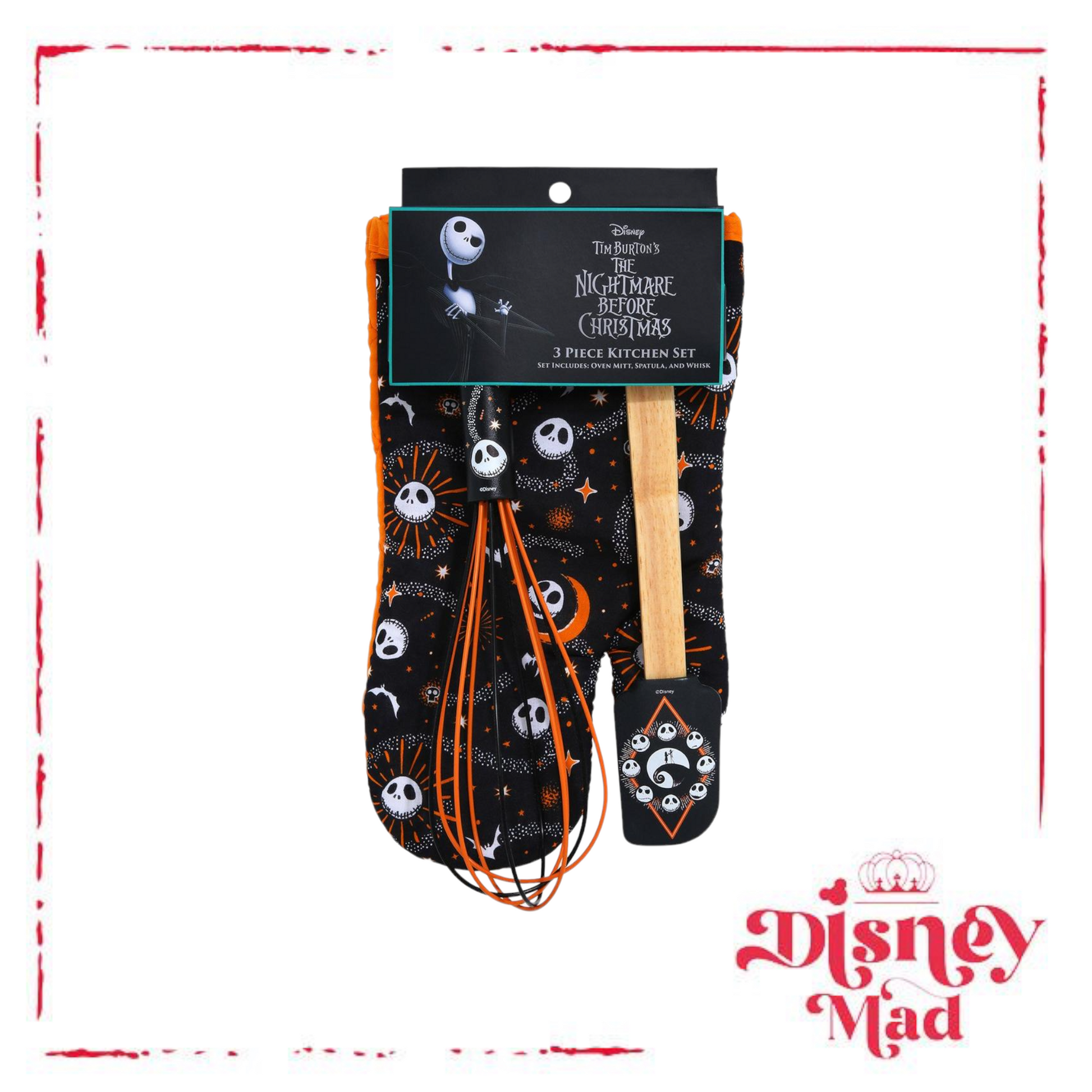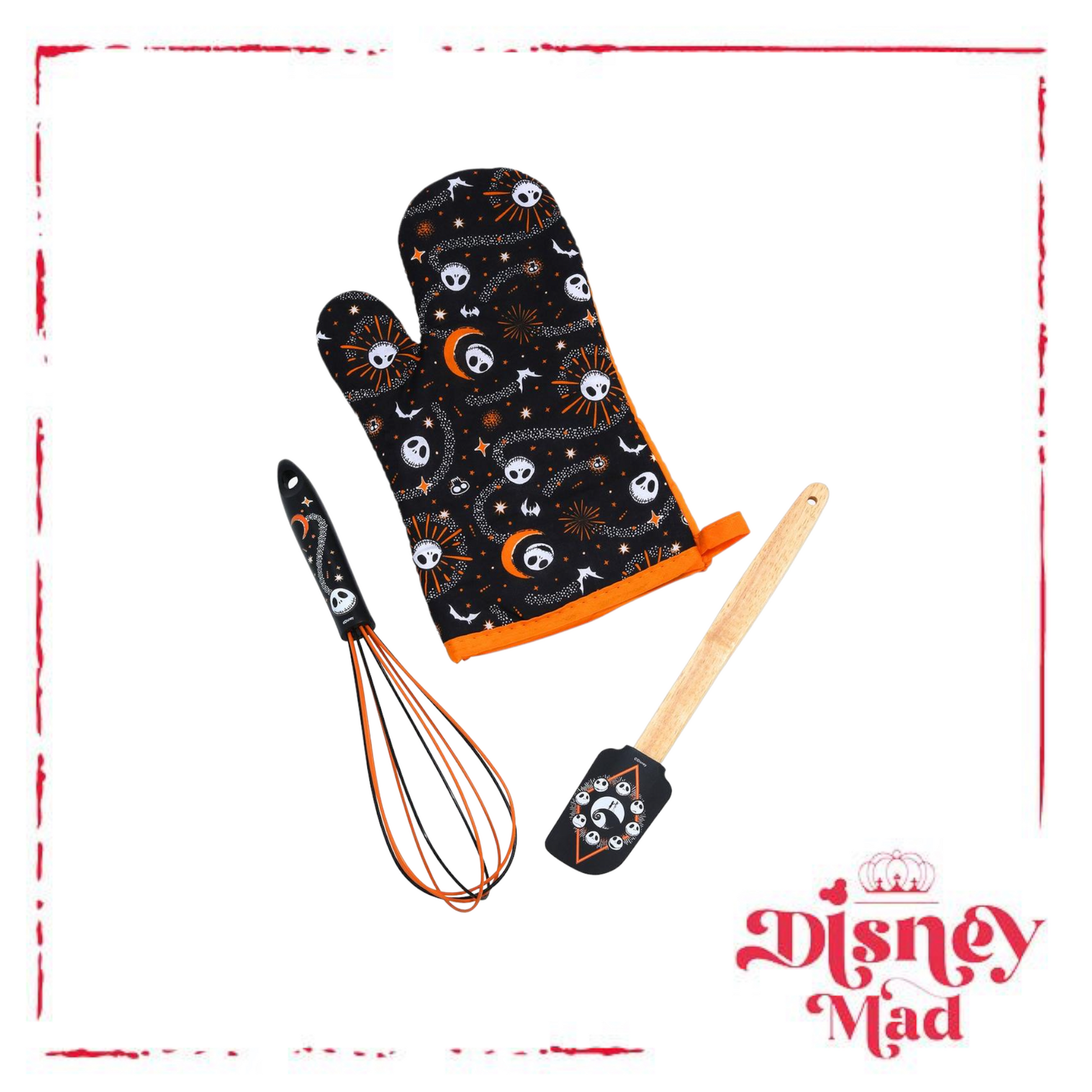 Whip up a batch of Frog’s Breath cookies and more ghoulish delights with this Nightmare Before Christmas-inspired baking set! Featuring Jack Skellington amongst celestial icons like crescent moons and stars, this set comes with an oven mitt, silicone spatula, and whisk.