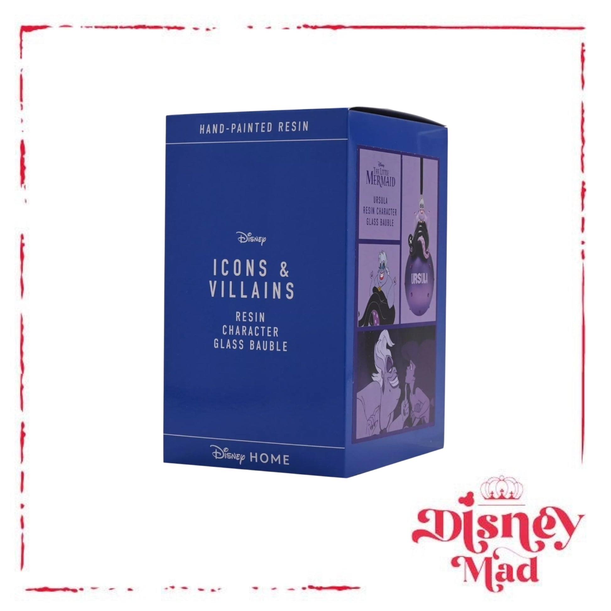 This charming Disney Evil Queen glass bauble brings a touch of fairytale magic to home decor. Adorned with the iconic character from Snow White, this ornament makes a wickedly wonderful gift for Disney fans. Crafted from glass with a glazed finish, the bauble depicts the villainous queen's pale face and black cowl in fine detail. A regal purple ribbon allows this tree decoration to be hung with ease. Enable fans to give their Christmas tree a delightfully dark twist with this Evil Queen bauble.