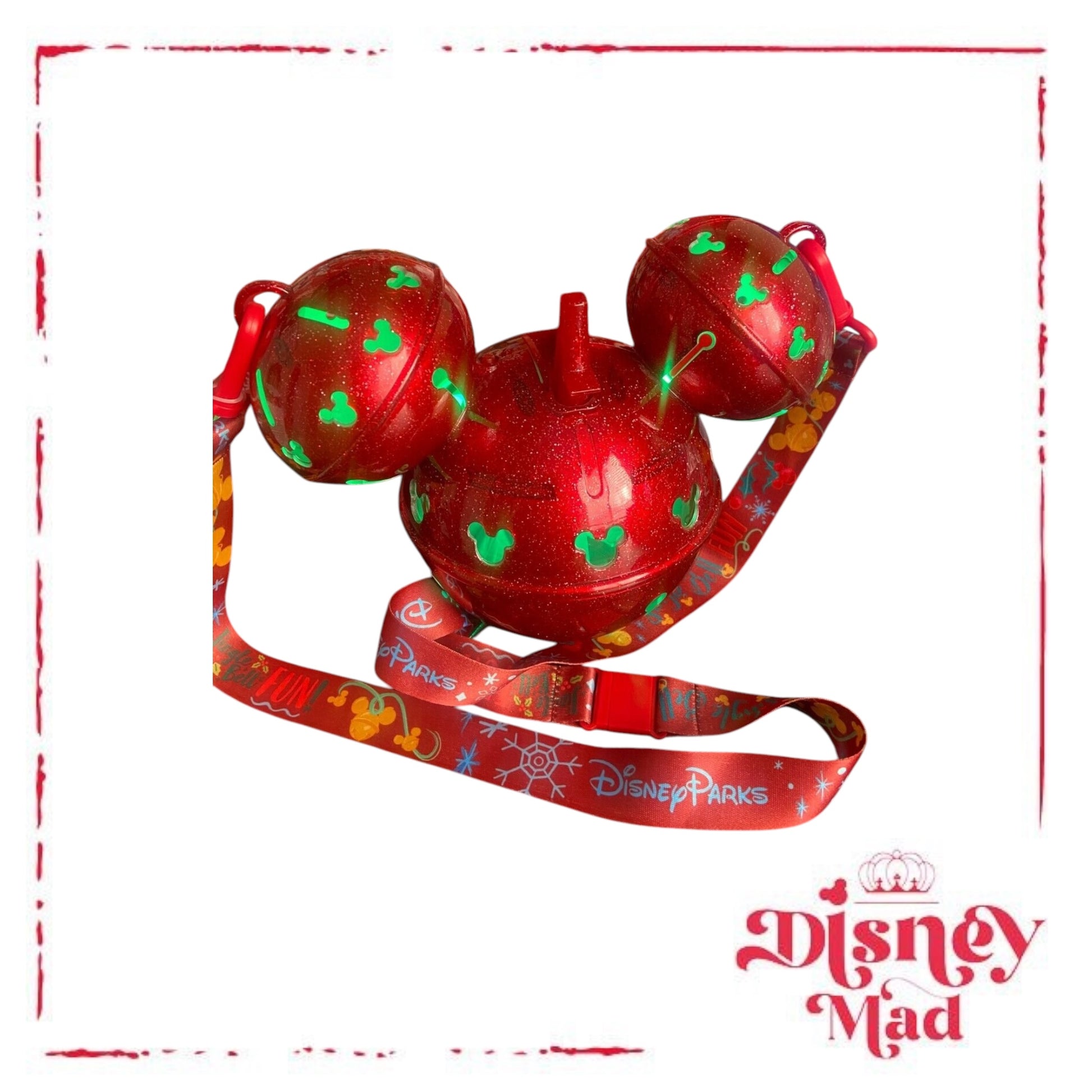Disneyland 2024 Mickey Icon Red Glitter Jingle Bell Light Up Sipper