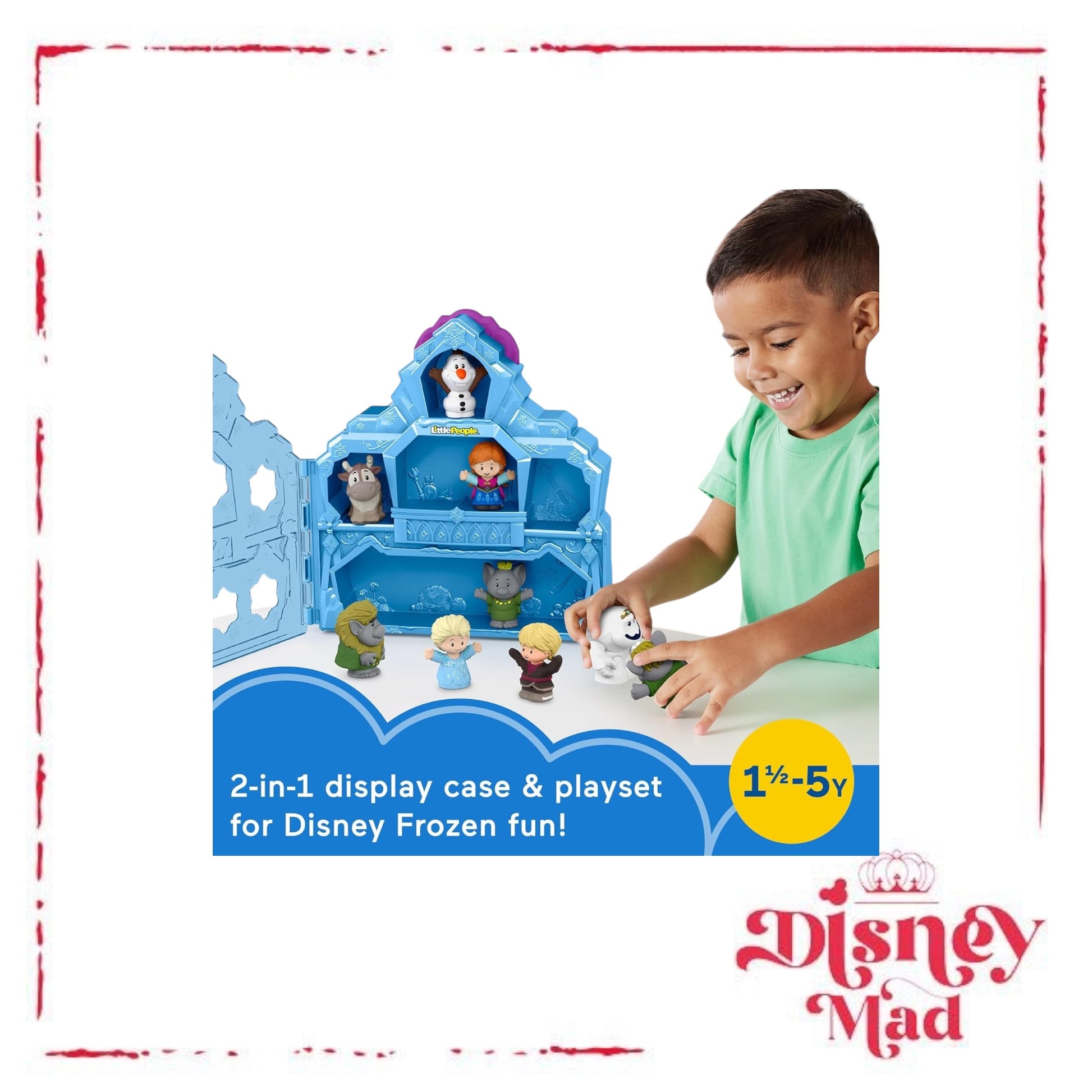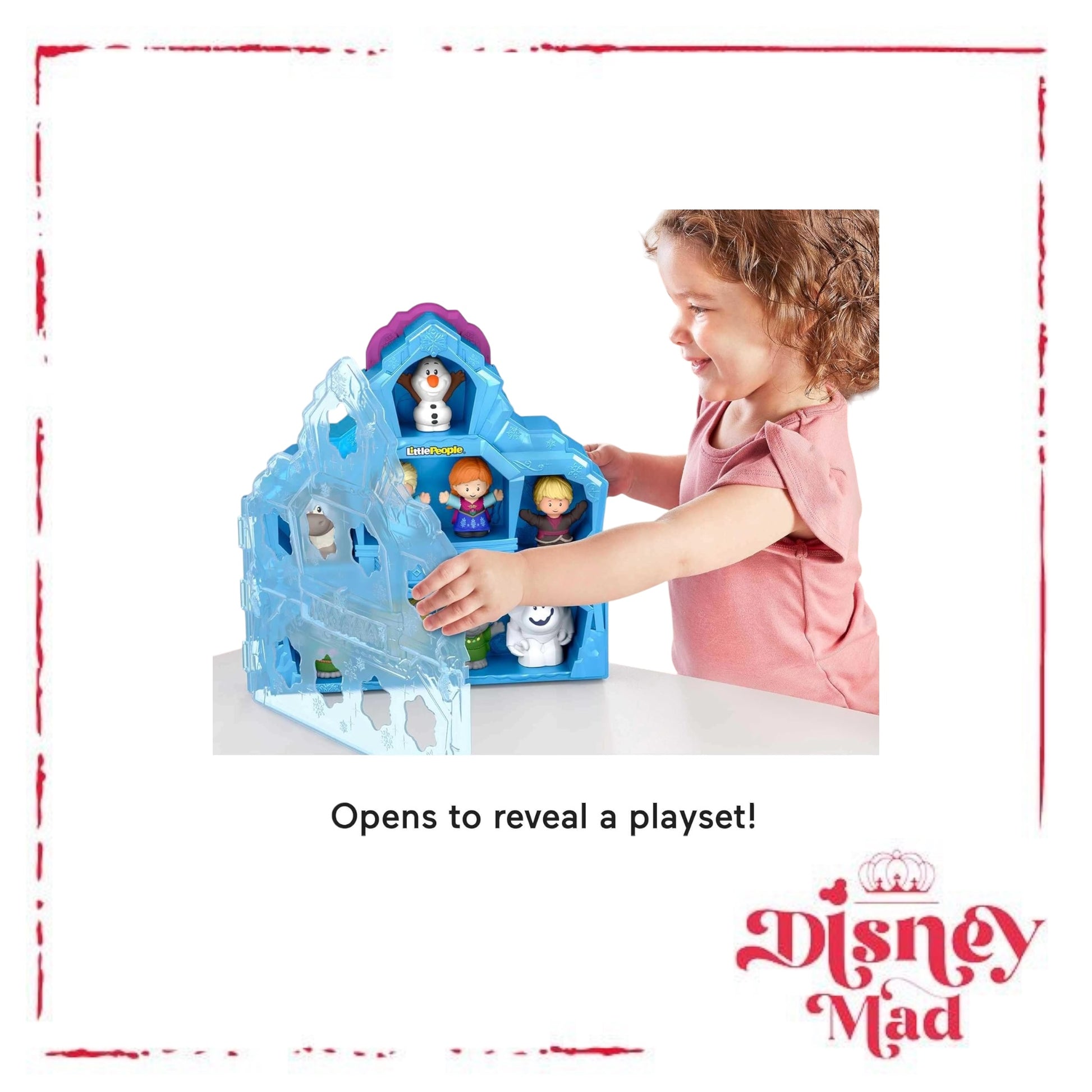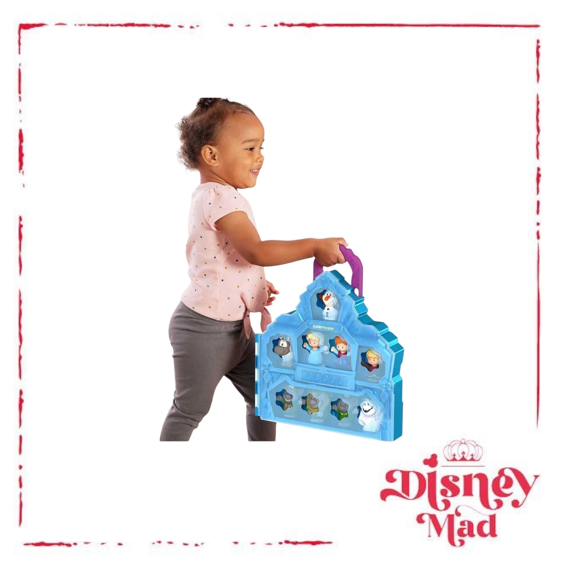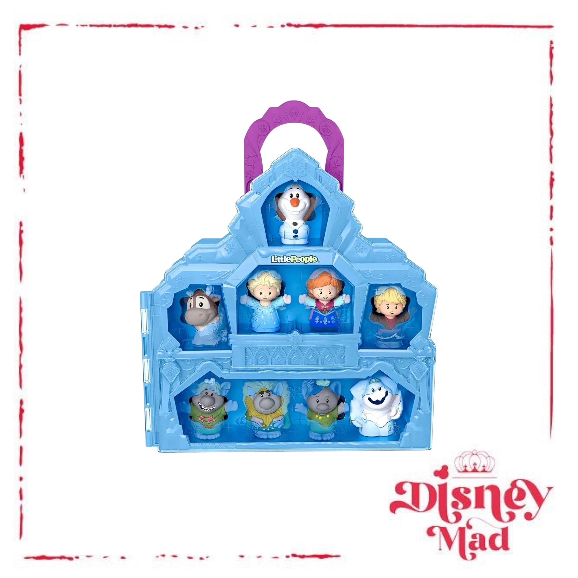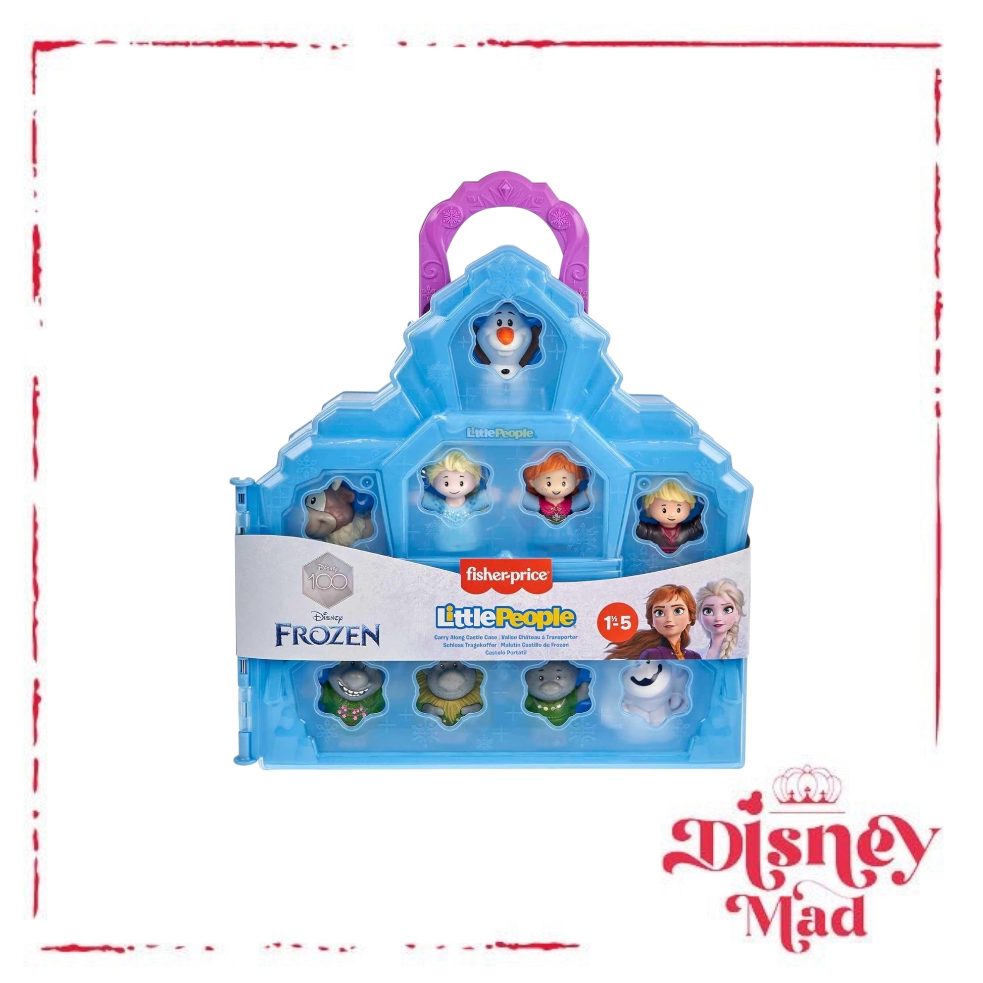 - Celebrate Disney 100 Years of Wonder with this 2-in-1 Little People playset and carrying case featuring Disney Frozen characters