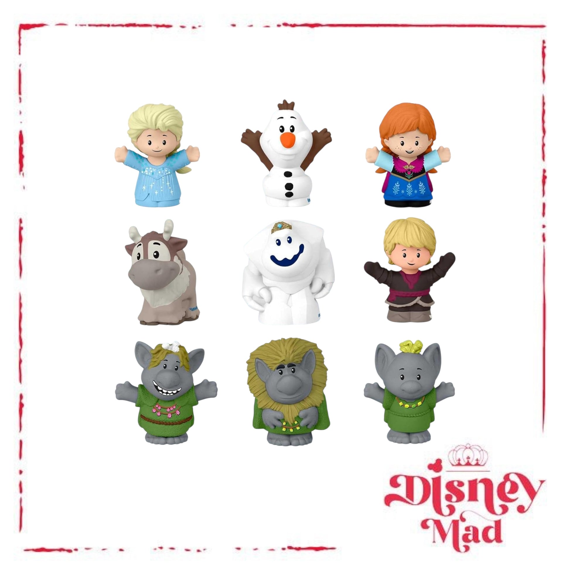 - Includes 9 figures: Anna, Elsa, Olaf, Kristoff, Sven, Grand Pabbie, Bulda, Pebble and Marshmallow, all sized for small hands to grasp and move to help strengthen fine motor skills