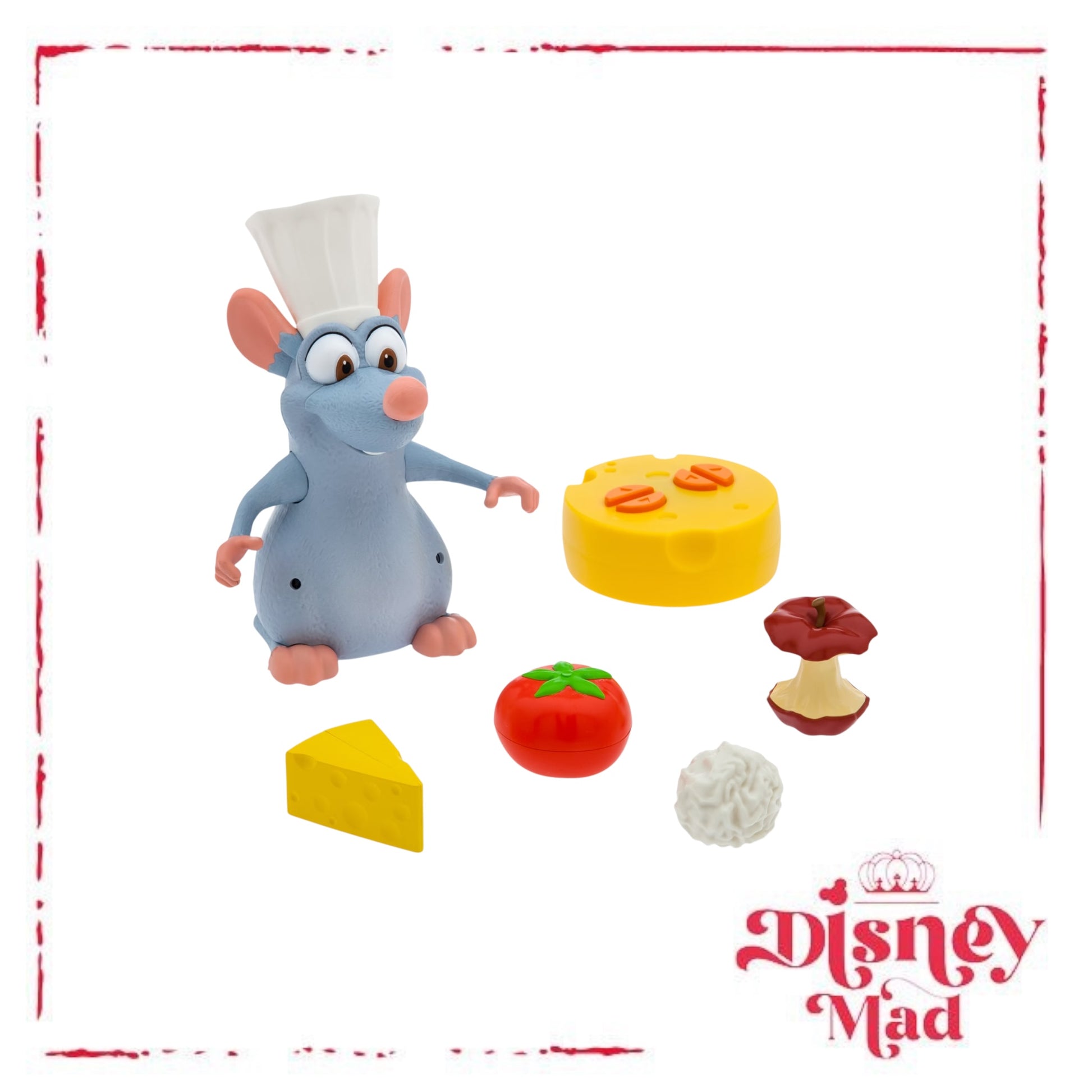 - Featuring Remy, remote control cheese wheel and toy tomato, apple core, cheese wedge and white ball