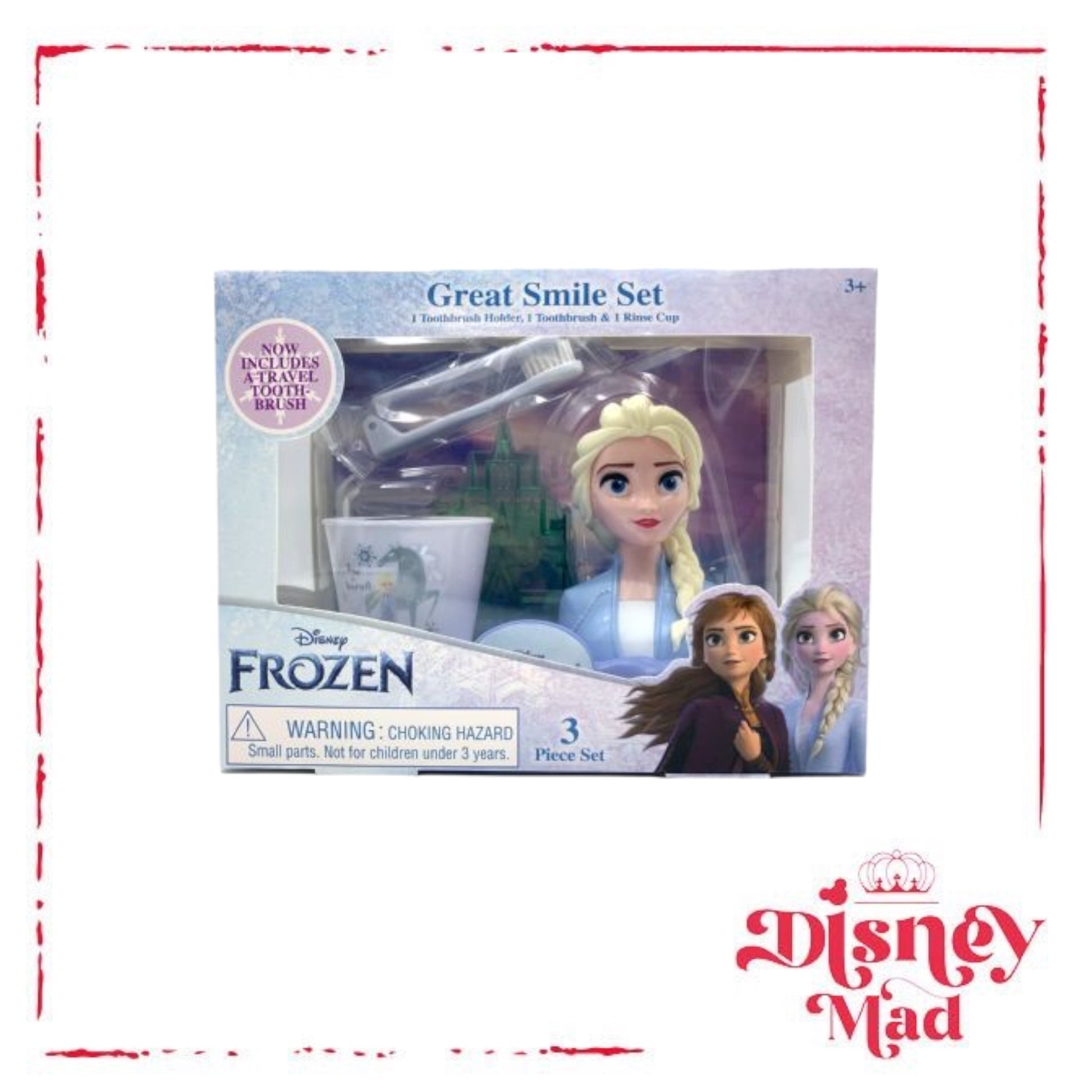 3 Piece Set • Make your little one excited to brush their teeth! • Travel toothbrush to take on-the-go! • Elsa molded toothbrush holder • Rinse Cup • Ages 3+