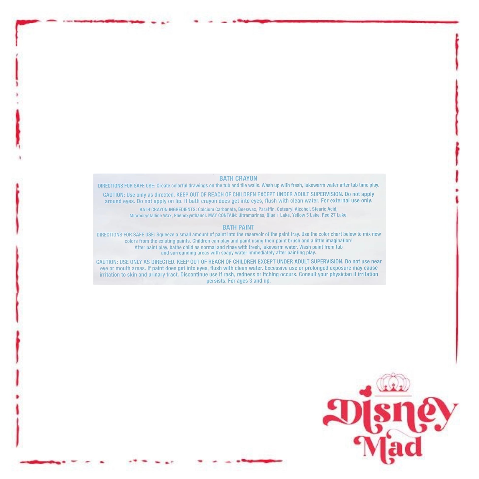 - Set includes 4 bath paints, 5 bath crayons, stamper, palette and brush