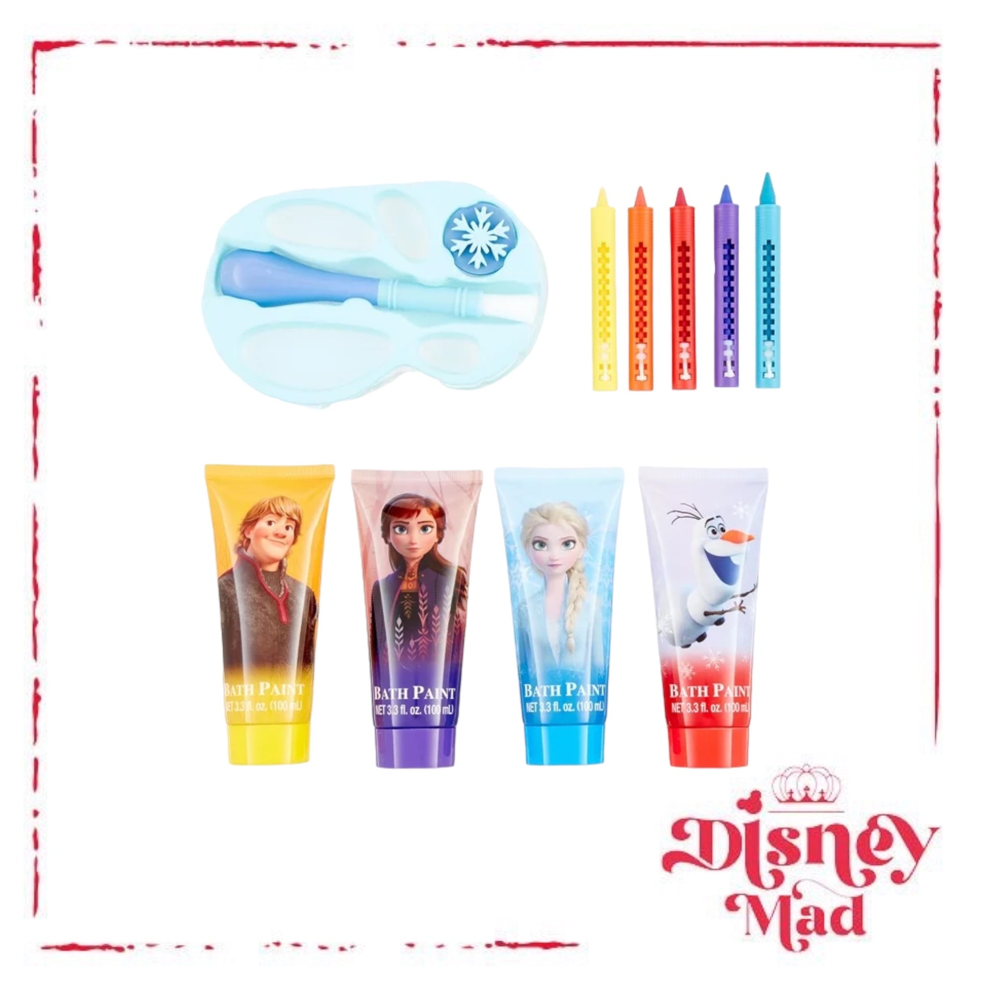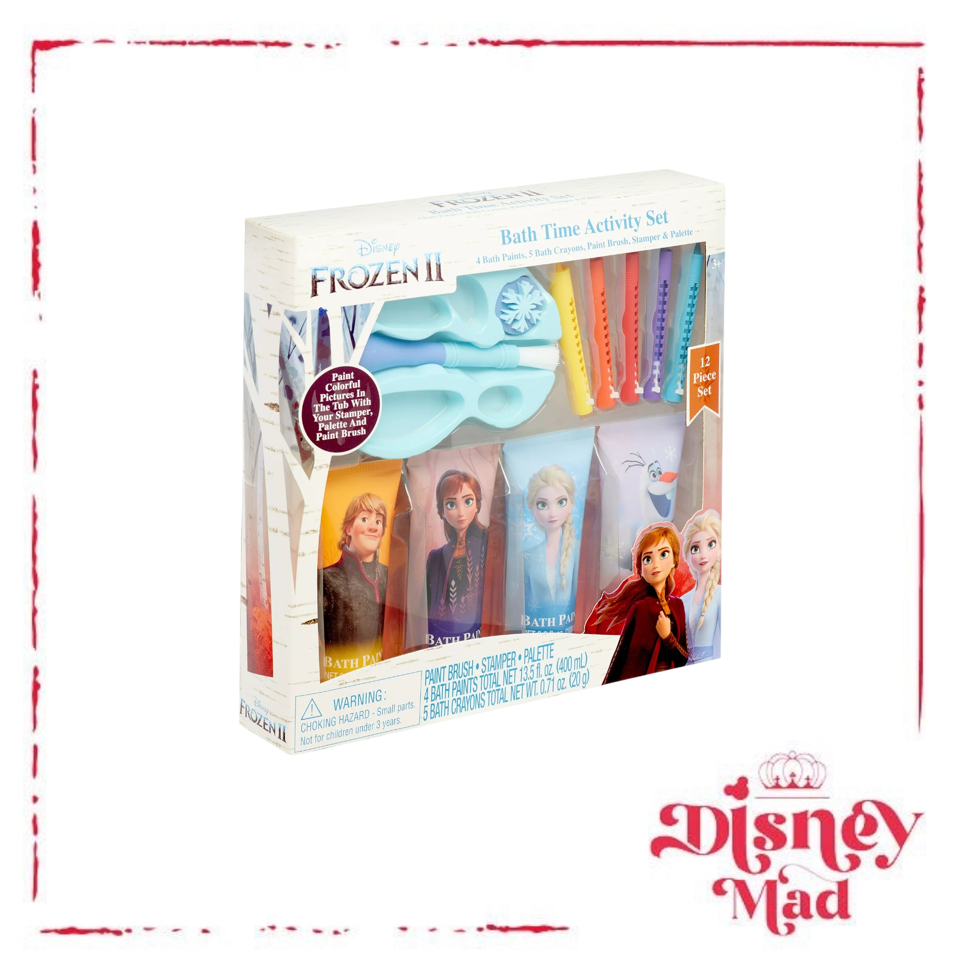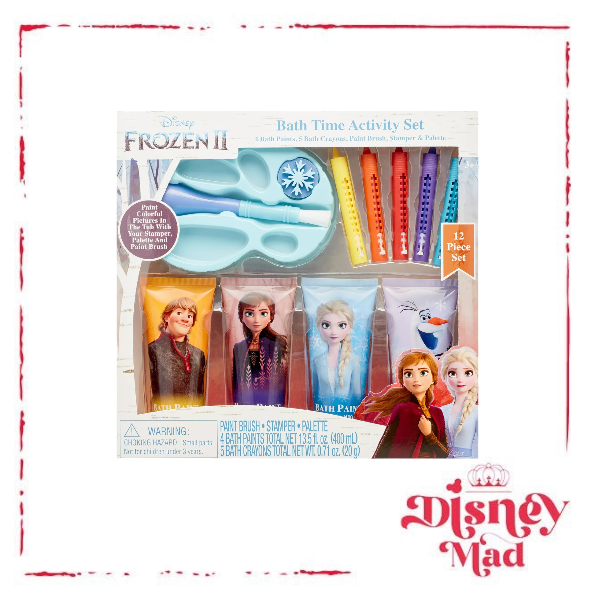 Bath time is more than just soap and bubbles when you've got the Frozen II Bath Time Activity Set. With this activity set, your child will create colorful works of art right in the bathtub as they work together with their favorite Frozen characters. Kids will enjoy the excitement of making masterpieces on the unique canvas that is the bathtub wall and crafting their own color palettes as they learn how to mix colors to create new ones. This set comes complete with four individual bath paint colors, five bath crayons, an empty palette, paintbrush, and stamper that are all specially designed to aid your child in their creative journey through bath time. When cleaning up sparks inspiration, your child will be ready to express themselves with the Frozen II Bath Time Activity Set.