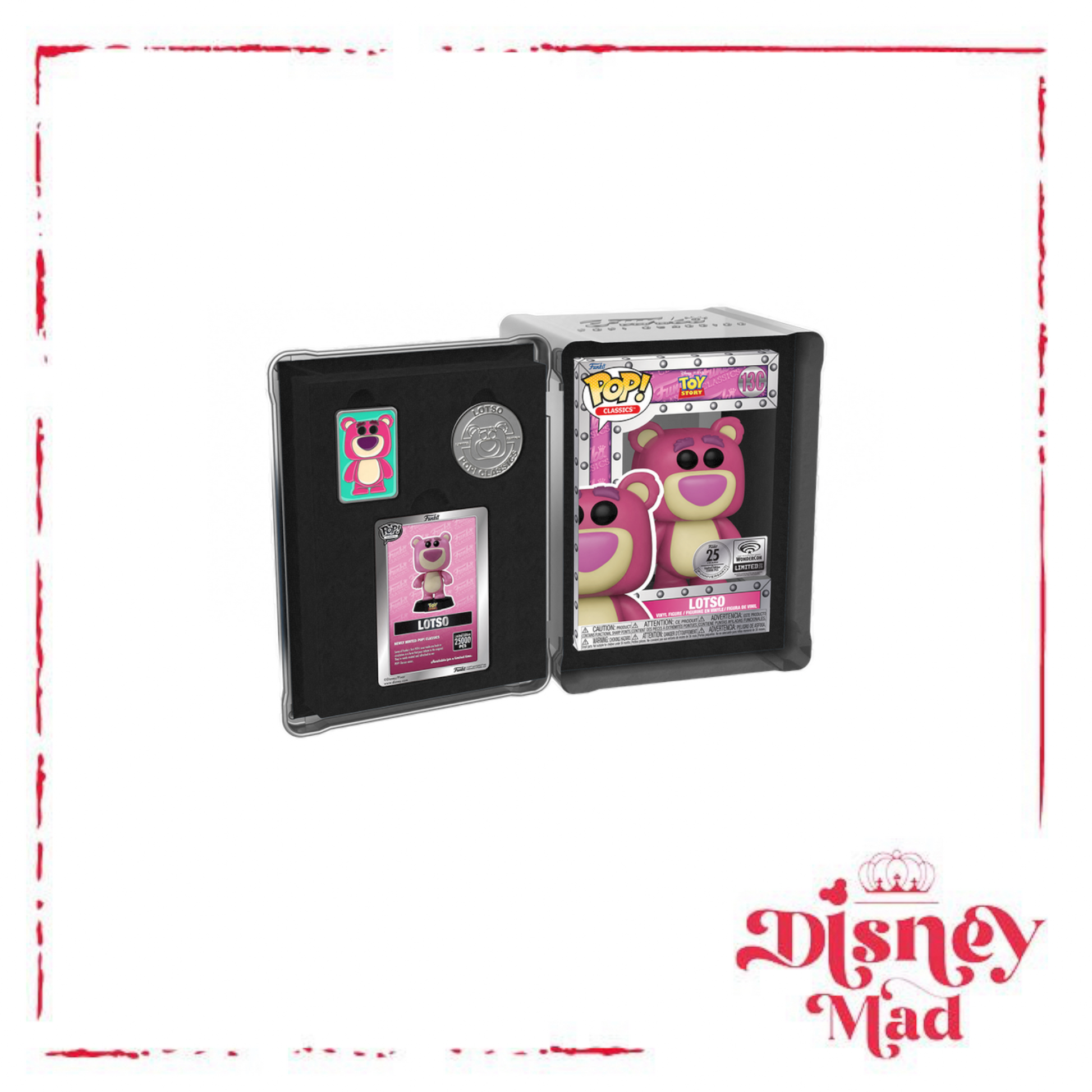 This Pop! Classics figure also includes an enamel Pop! Pin and a stainless-steel Pop! Coin, both featuring Pop! Lotso’s face, as well as a foil Certificate Card detailing his biographical information. Only 25,000 of this limited-edition collectible were made! Vinyl figure is approximately 4.4-inches tall.