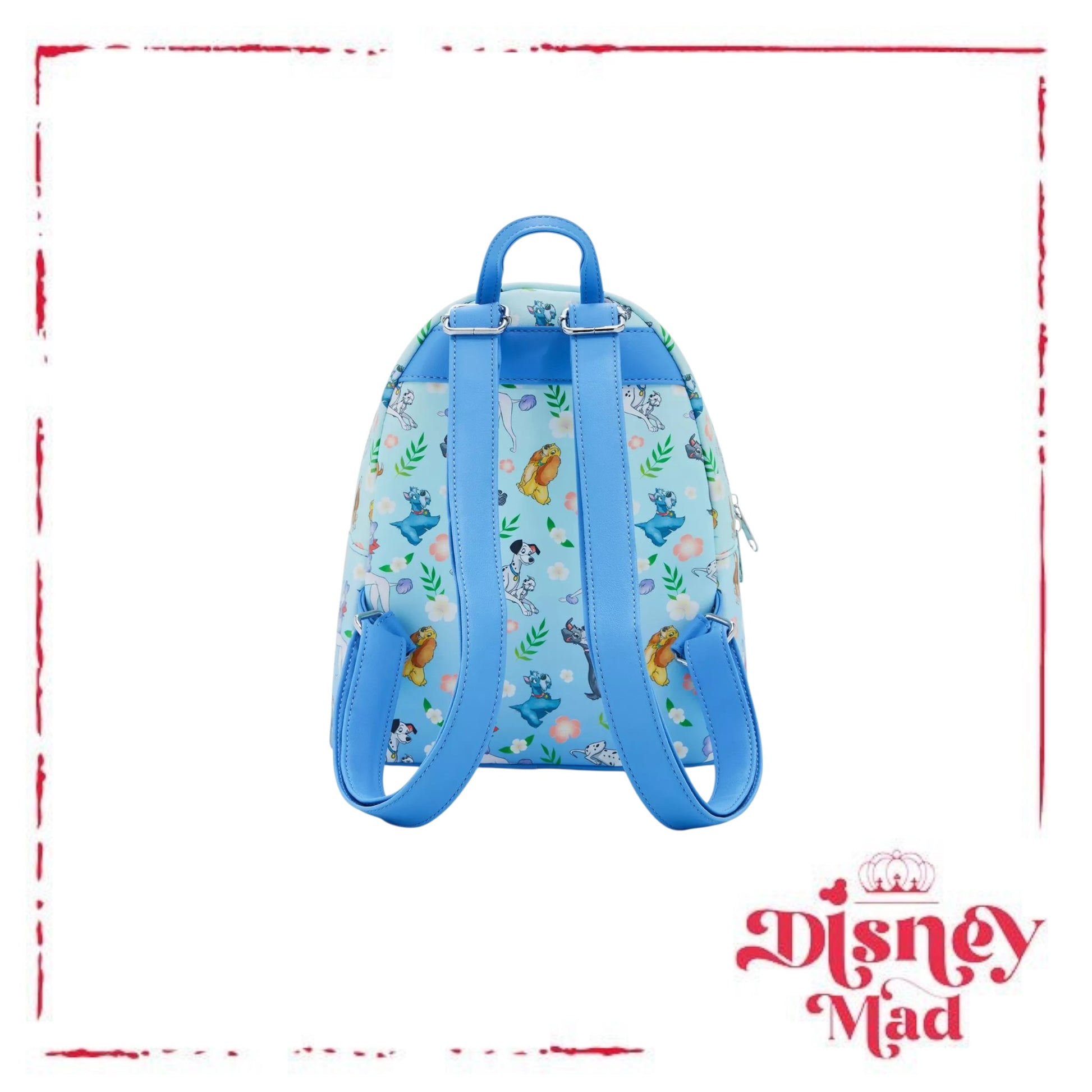 Who let the Disney dogs out?! This mini backpack is decorated with flowers and all your favorite Disney canine characters, from films such as The Fox and the Hound, 101 Dalmatians, Lady and the Tramp and more. There's a front zippered pocket, interior pocket and adjustable straps.