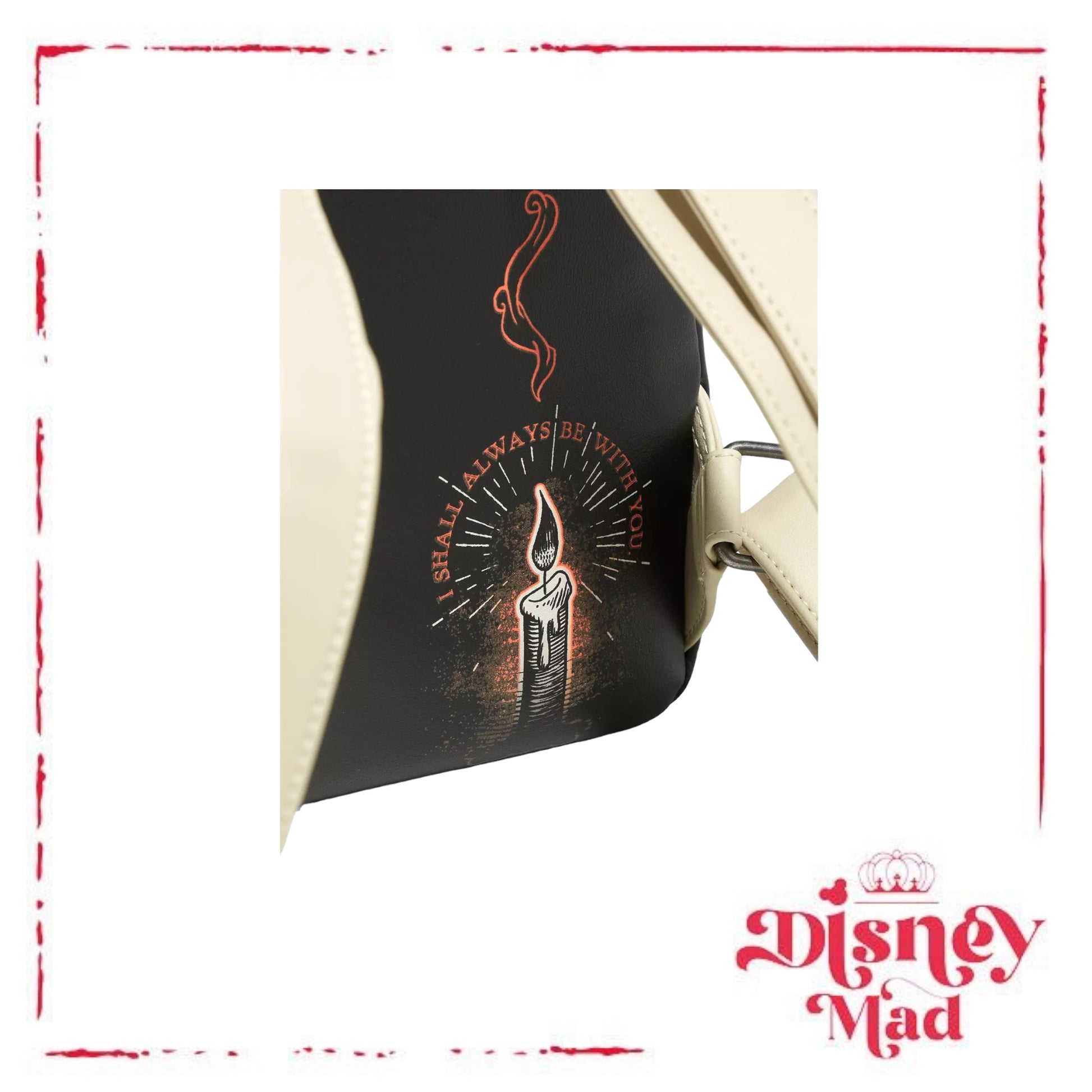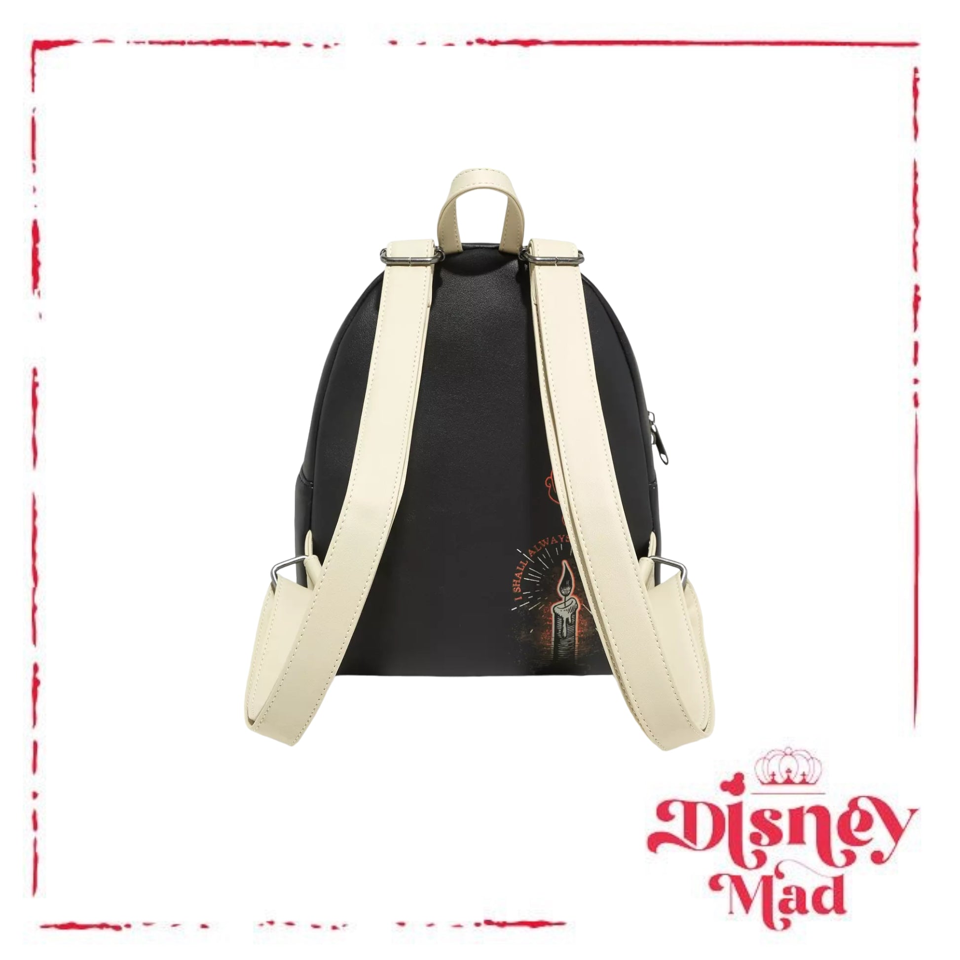 Making your way to Old Burial Hill? Don't forget to pack the salt! From Hocus Pocus, this mini backpack features a sketch of Binx posing in front of a sunrise, with the text from Emily's tombstone printed on the front zipper pocket. Comes with adjustable straps, interior drop pocket, glow-in-the-dark detailing and top carrying handle.