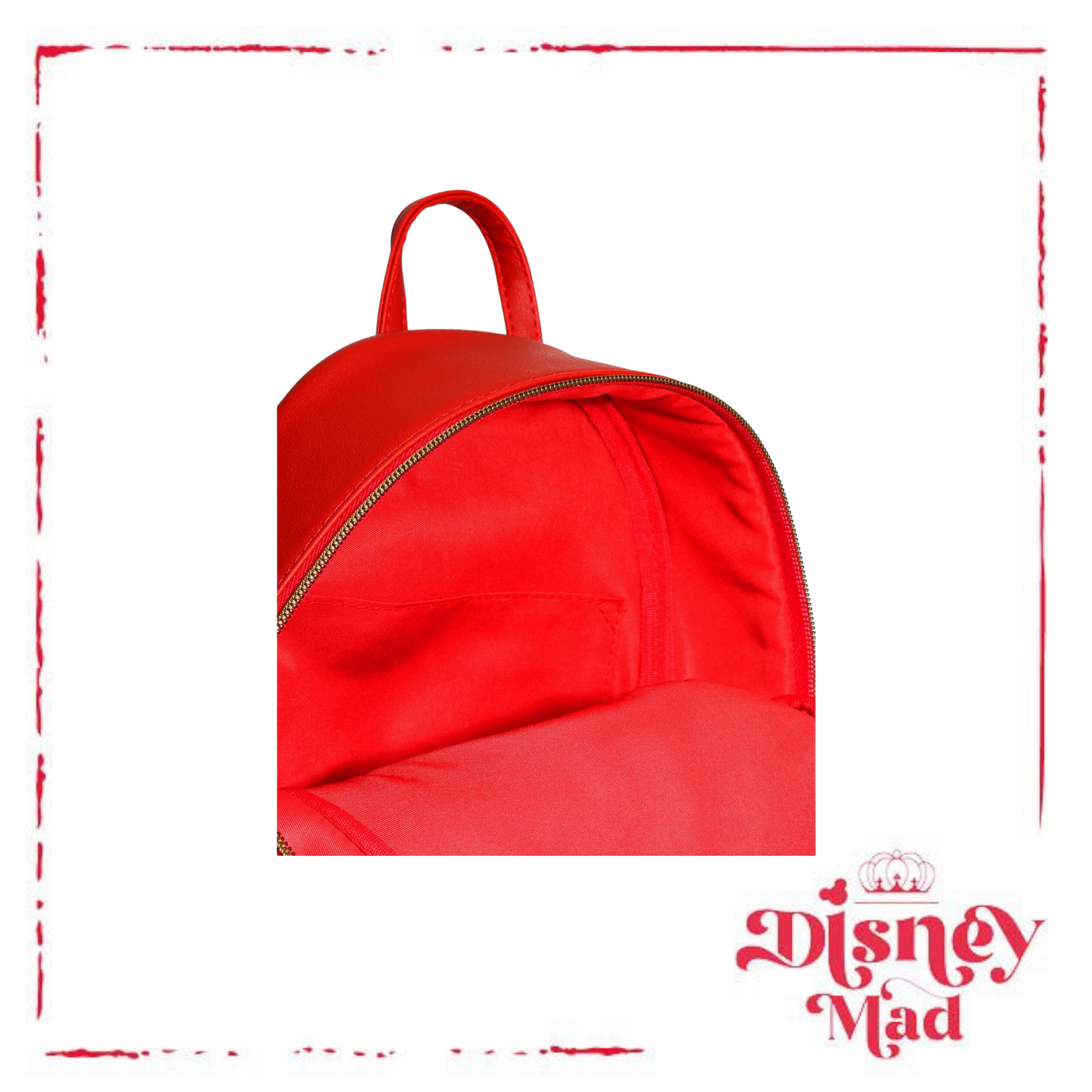 Say "Oh boy!" to more Mickey Mouse accessories with this black and red mini backpack. Printed with Mickey Mouse on the front below the diagonal zipper pocket, with an allover print of his head above and a black trim. Featuring a top zipper closure, adjustable straps and a top carrying handle.