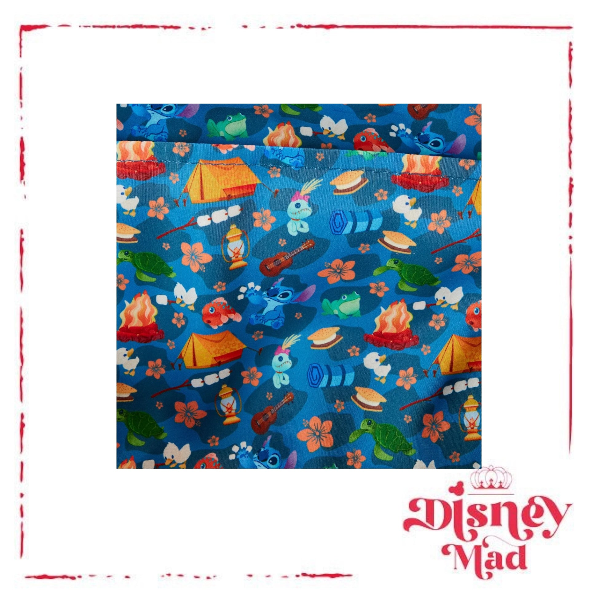 There’s nothing like sharing s’mores under the stars! Camp out on the shores of the great outdoors with the Loungefly Stitch Camping Cuties AOP Nylon Mini Backpack. On the front zip pocket, Stitch roasts some marshmallows at his campsite.