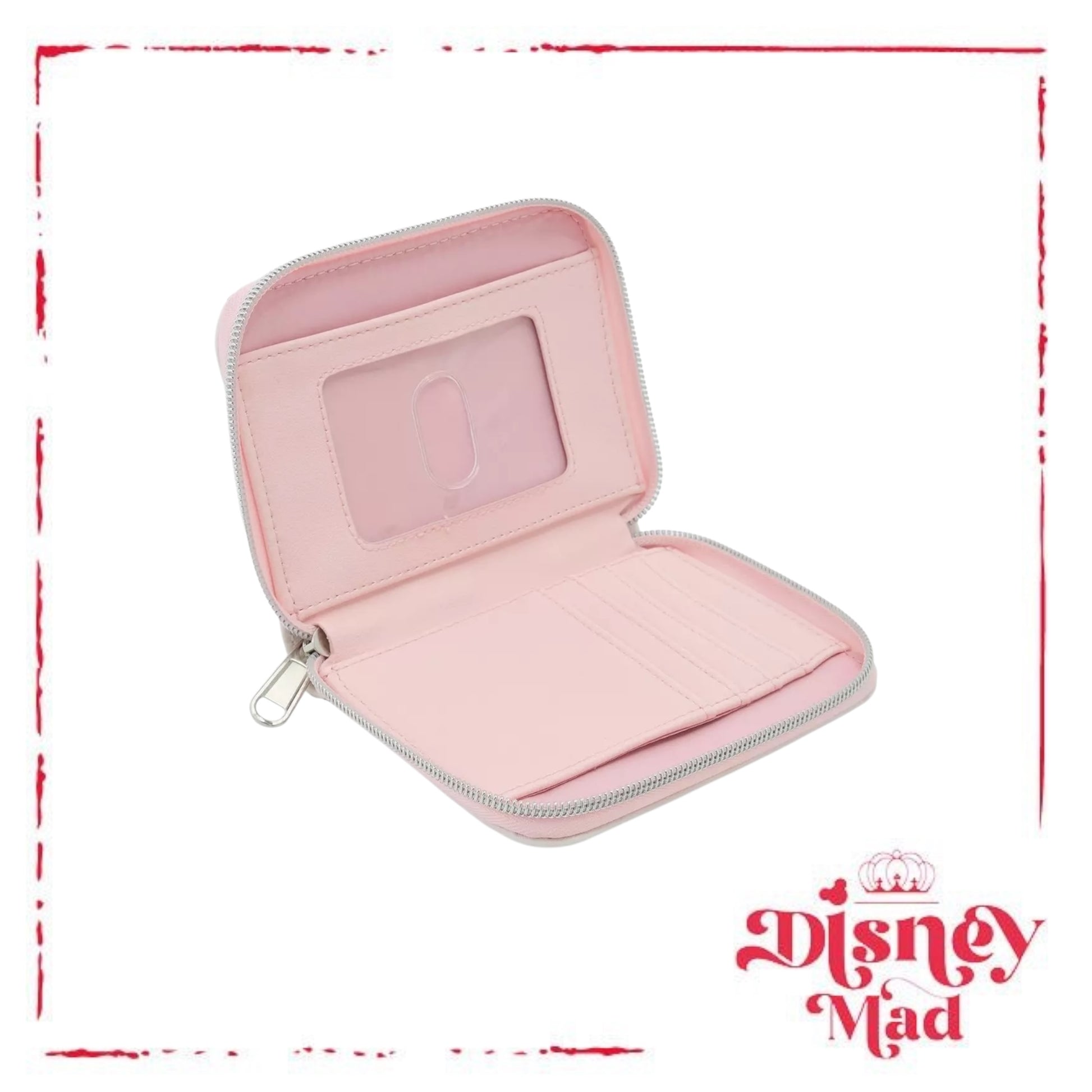 Roam around Paris with the most purr-fect wallet! This mini zipper wallet from The Aristocats features Marie, Toulouse and Berlioz among cherry blossom branches, plus Marie on the back side. Comes with 4 card slots, clear ID slot and zipper closure.