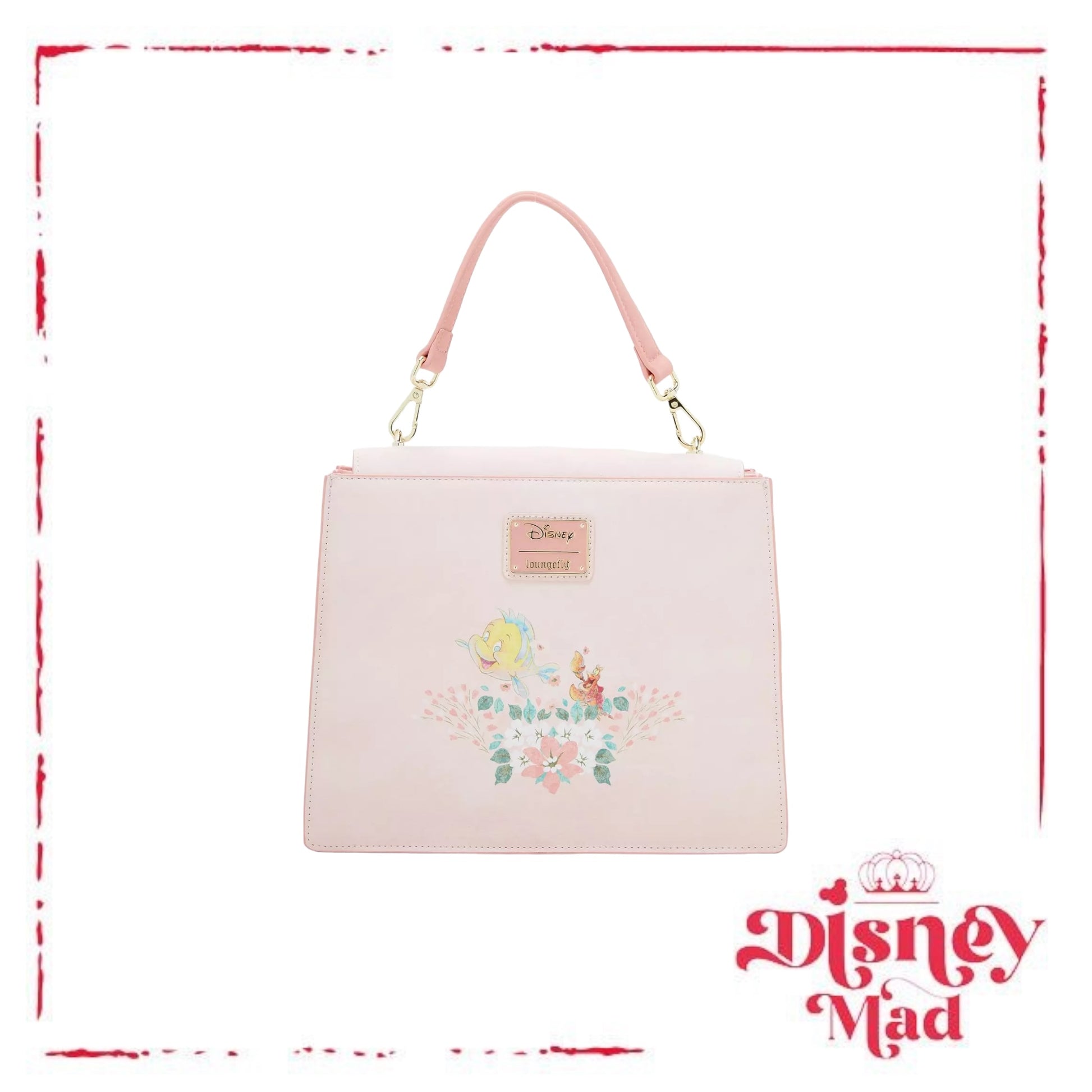 Get ready for a walk along the beach with this Little Mermaid-inspired bag! Featuring a design of Ariel surrounded by flowers, the front flap of the purse includes an embossed shell detail. With Flounder and Sebastian featured on the back, a removable top handle, and removable crossbody strap, this bag is perfect for fans of the Disney film.