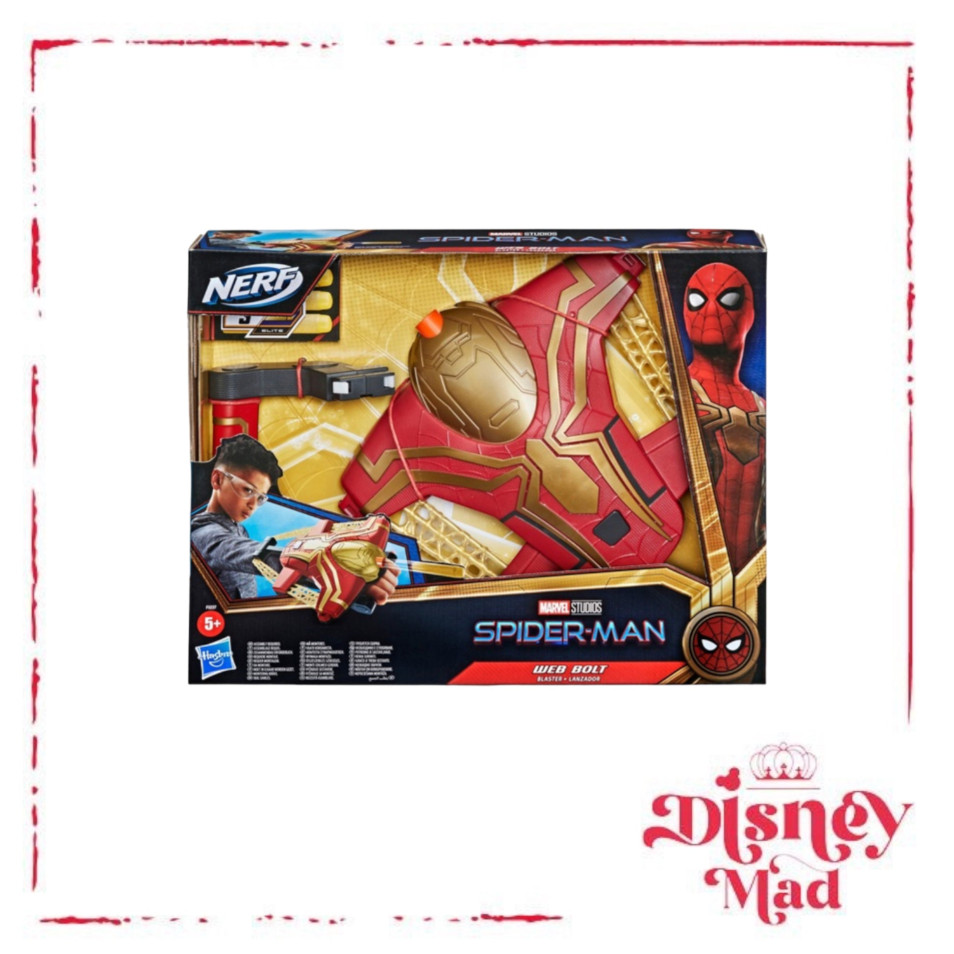 - Spider-Man Web Bolt Blaster features web-detailing and red and gold design
