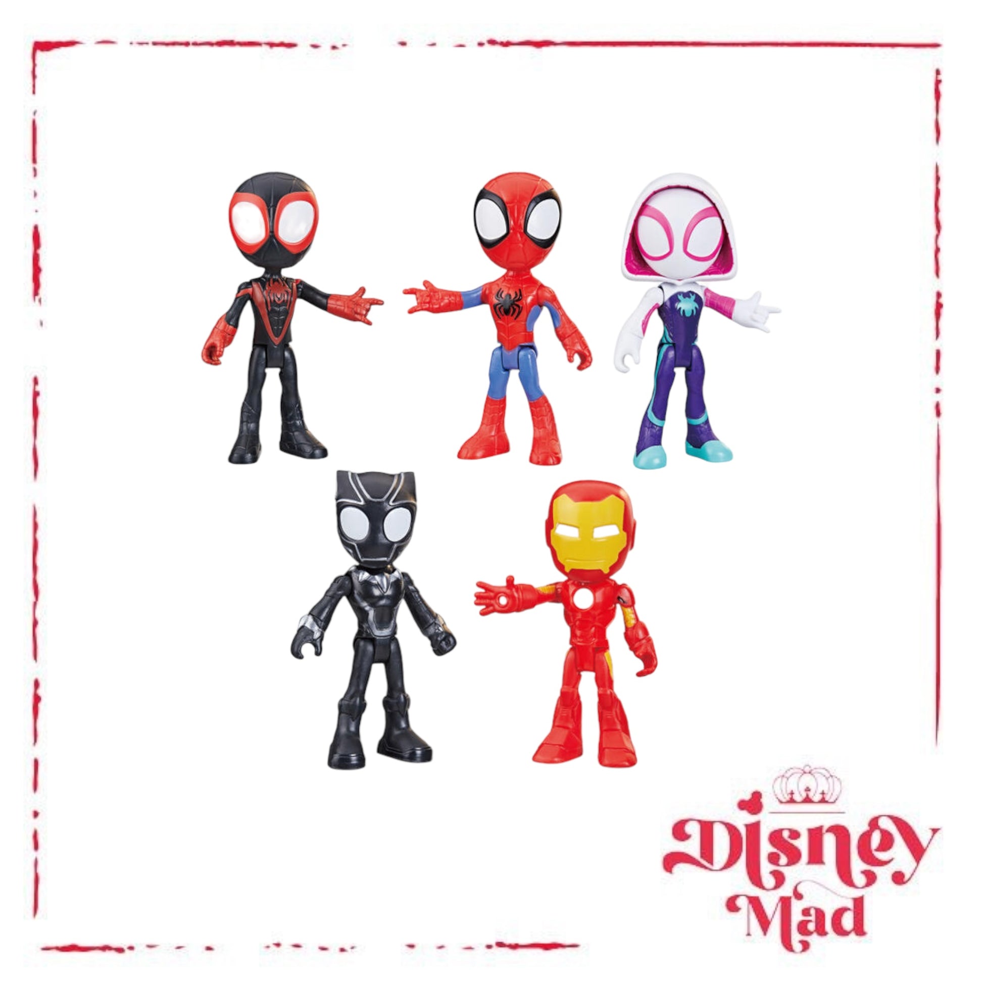 - 5 characters in one collection: let's swing, spidey team! this collection includes 5 favorite spidey and his amazing friends characters: spidey, miles morales: spider-man, ghost-spider, iron man and black panther