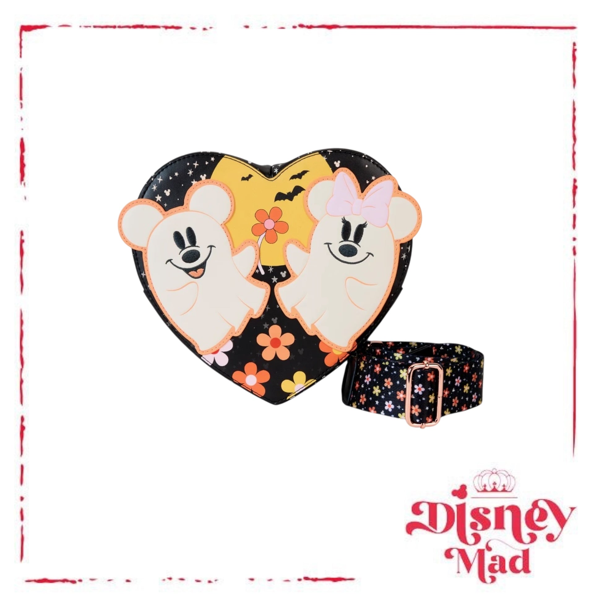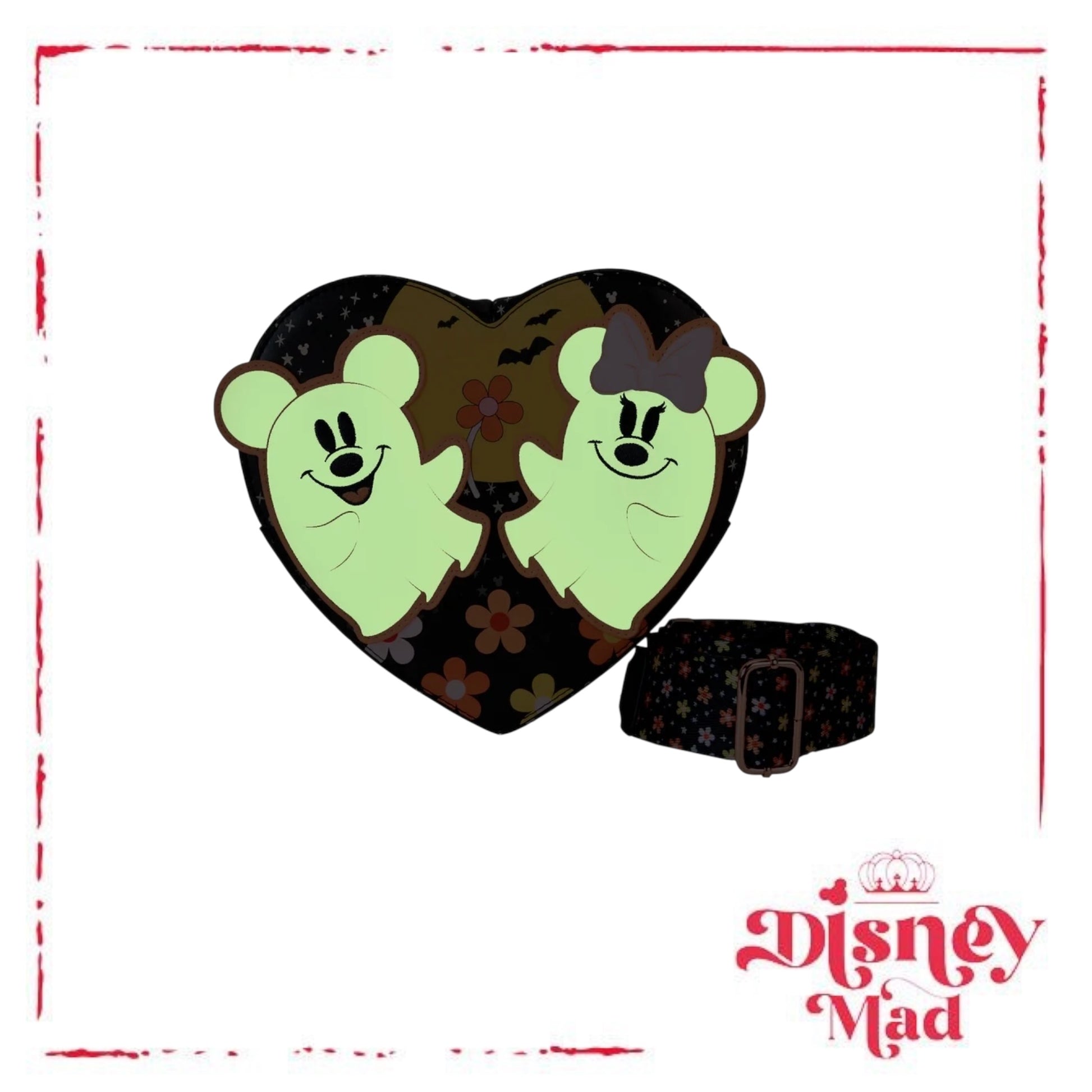 You’re not hallucinating – those are, in fact, the cutest ghosts you’ve ever seen. These adora-boo apparitions appear on a heart-shaped bag, and they even glow in the dark as daylight fades! A floral shoulder strap ties the design together for a look that’s too sweet to be scary. These fashionable phantoms make a darling addition to any outfit and are thrilled to join you on your next haunt.